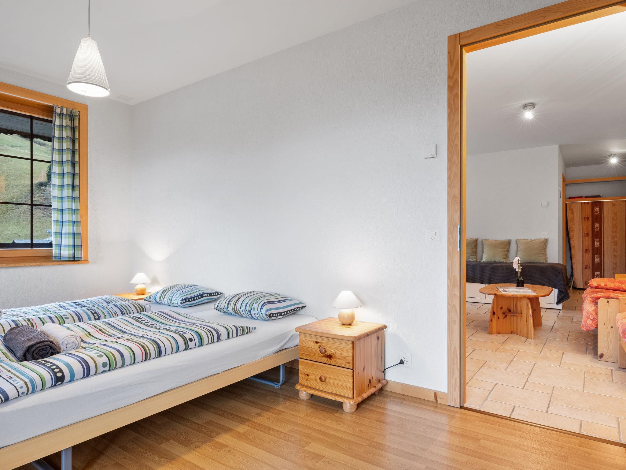 "Le Hameau", 2-room apartment 55 m2 on 1st floor. Spacious and bright, comfortable and cosy furnishings: living/dining room with 1 double sofabed and TV. Exit to the balcony. 1 room with 2 beds (90 cm, length 200 cm). Exit to the balcony. Open kitchen (oven, dishwasher, 4 ceramic glass hob hotplates, toaster, microwave, electric coffee machine, Capsules for coffee machine (Nespresso) extra). Exit to the balcony. Bath/WC. Underfloor heating. Large balcony 40 m2, small balcony. Balcony furniture, electric barbecue. Very beautiful view of the mountains and the ski run. Facilities: Internet (WiFi). Garage space n O. Please note: non-smokers only. Maximum 1 small pet/ dog allowed. Multipass included in Summer.