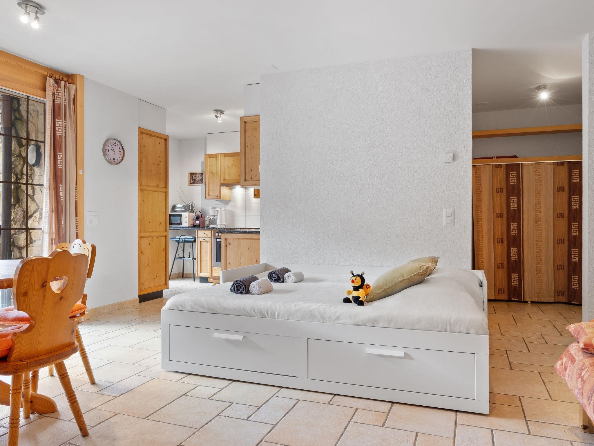 Les Crosets 20 km from Monthey: Modern, comfortable residence "Le Hameau des Crosets". In the centre of Les Crosets, excellent location: right in the centre but still quiet. In the house: lift, storage room for skis, central heating system. Communal covered parking. Grocery 10 m, restaurant 100 m, bus stop "Chapelle, Les Crosets" 30 m, railway station "Val d'Illiez gare" 8.7 km. Tennis 12 km, sports centre 12 km, walking paths from the house 1 m, skisport facilities 100 m, slopes 50 m, ski rental 100 m, children's ski school 100 m, ice rink 12 km. Well-known ski regions can easily be reached: Portes du Soleil (600km Pistes). Hiking paths: Portes du Soleil.