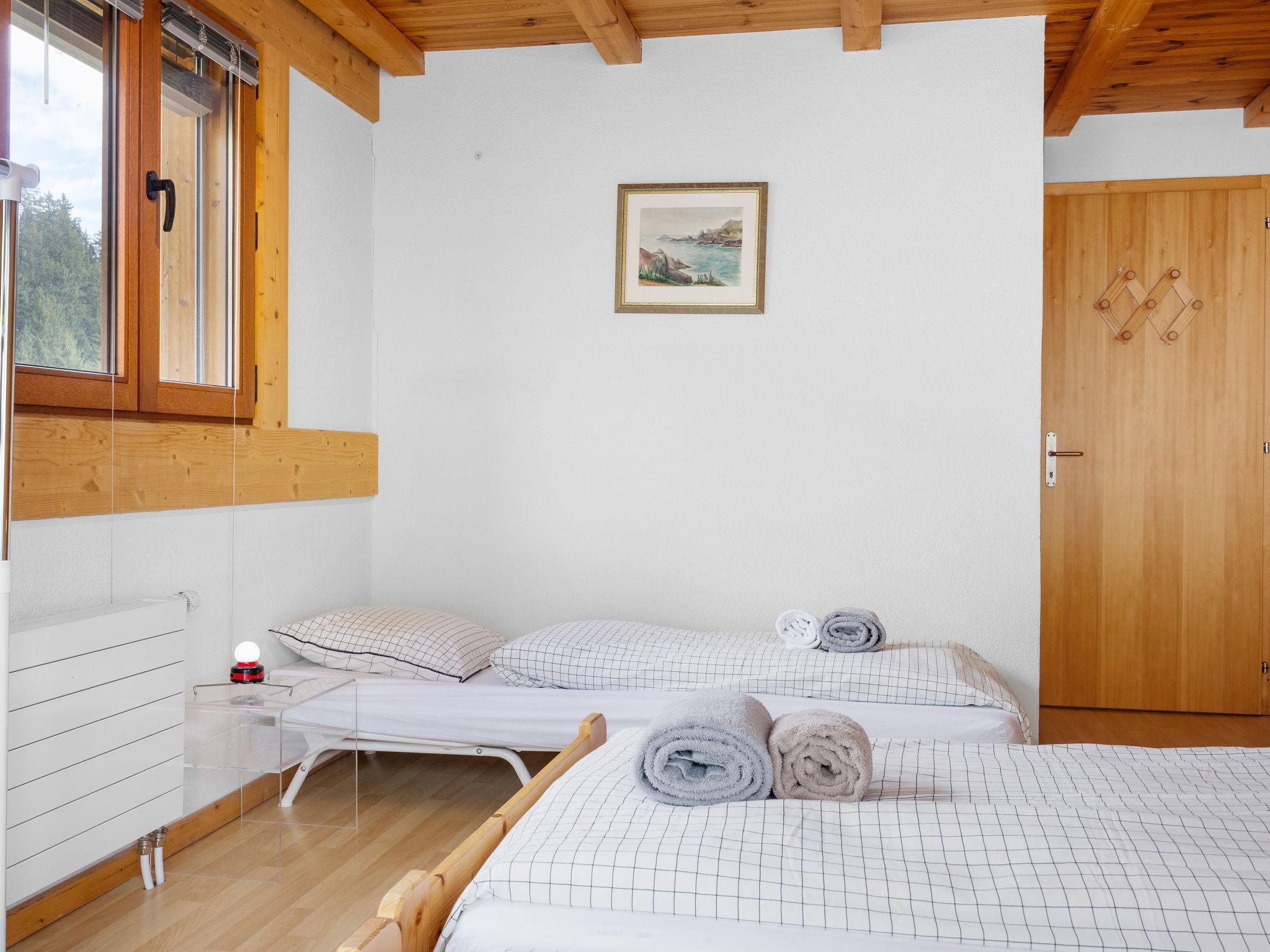 "Sundance 10", 3-room apartment 80 m2 on 1st floor. Object suitable for 4 adults + 2 children. Cosy and wooden furniture furnishings: living/dining room with 1 double sofabed, cable TV, radio and CD-player. Exit to the balcony. 1 room with 1 french bed (150 cm, length 190 cm). Exit to the balcony. 1 room with 2 beds and 1 sofabed (85 cm, length 200 cm). Open kitchen (oven, dishwasher, 4 ceramic glass hob hotplates, microwave, electric coffee machine, raclette grill, fondue Set (cheese)). Bath/WC, shower/WC. Electric heating, boiler. Balcony. Balcony furniture. Very beautiful view of the mountains. Facilities: Internet (WiFi, free). Parking space n 10, garage (extra) at 50 m. Please note: non-smokers only.