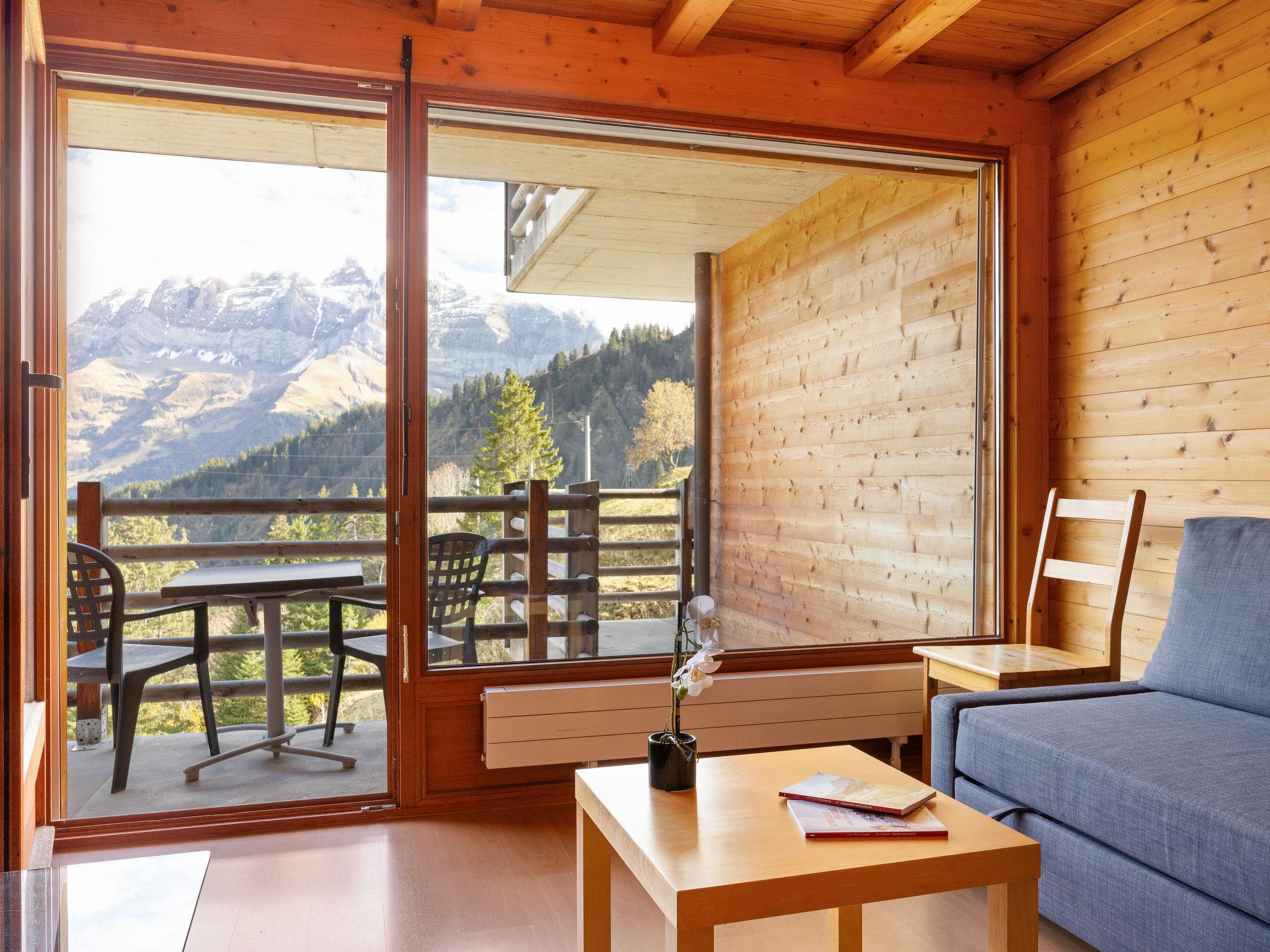 "Sundance 9", 2-room apartment 48 m2 on 1st floor. Object suitable for 2 adults + 2 children. Tasteful and cosy furnishings: living/dining room with 1 sofabed (135 cm, length 180 cm), cable TV, radio, CD-player and DVD. Exit to the balcony. 1 room with 1 double bed. Exit to the balcony. Open kitchen (oven, dishwasher, 4 ceramic glass hob hotplates, electric coffee machine, Capsules for coffee machine (Nespresso) extra, raclette grill, fondue Set (chinoise, cheese)). Shower/WC. Electric heating, boiler. Balcony. Balcony furniture. Very beautiful view of the mountains. Facilities: hair dryer. Please note: non-smokers only.