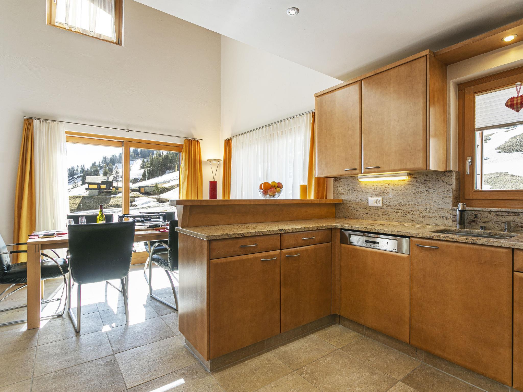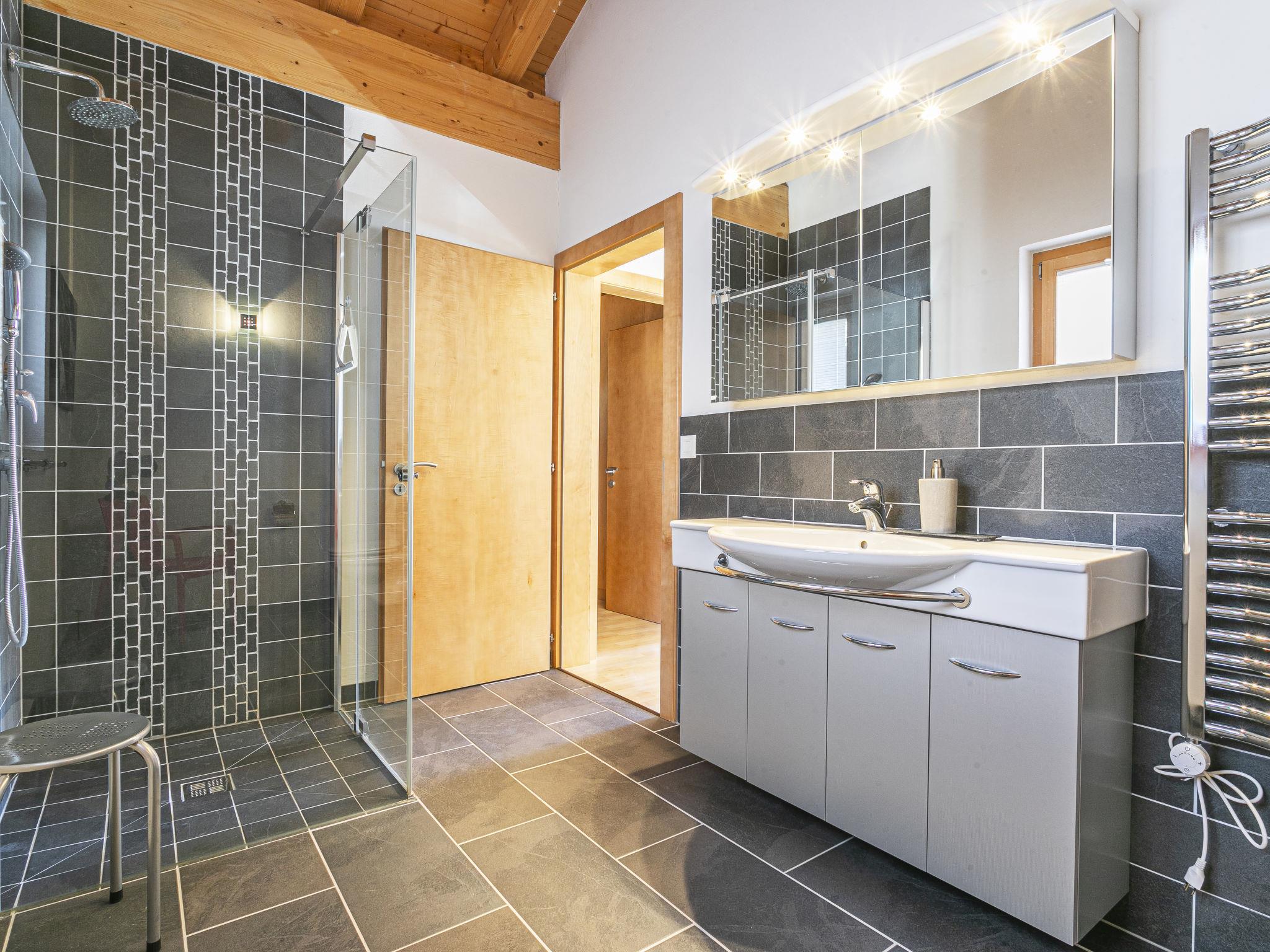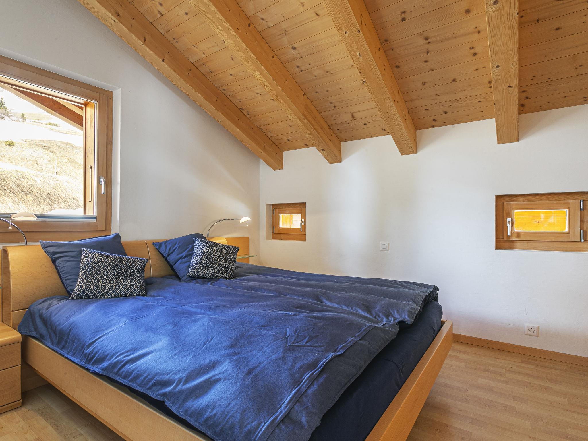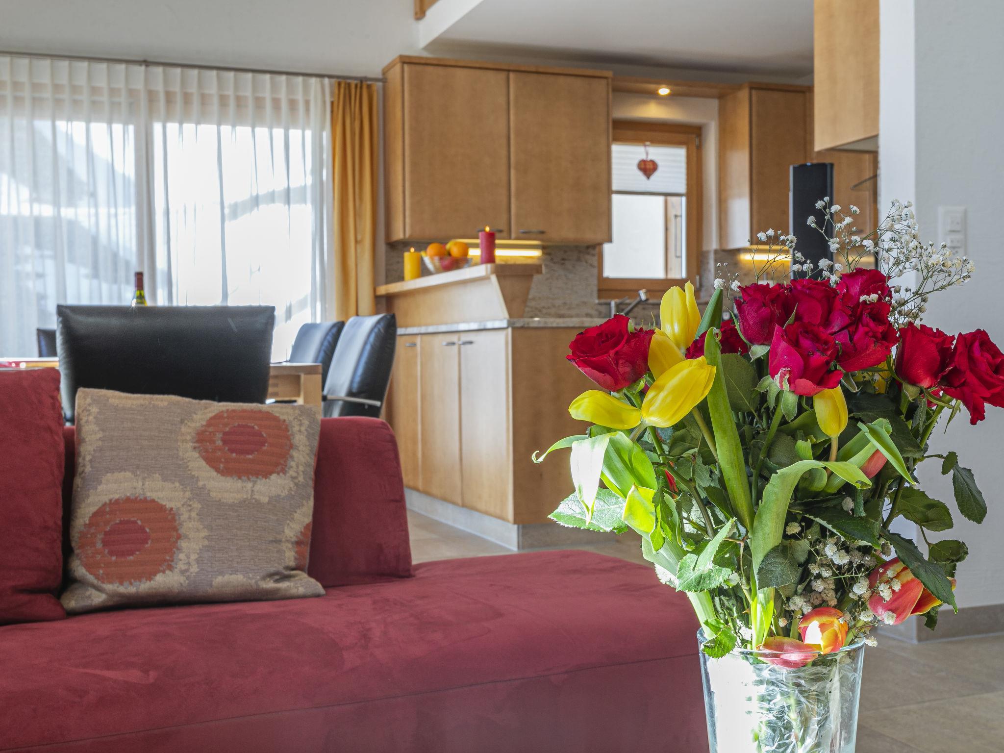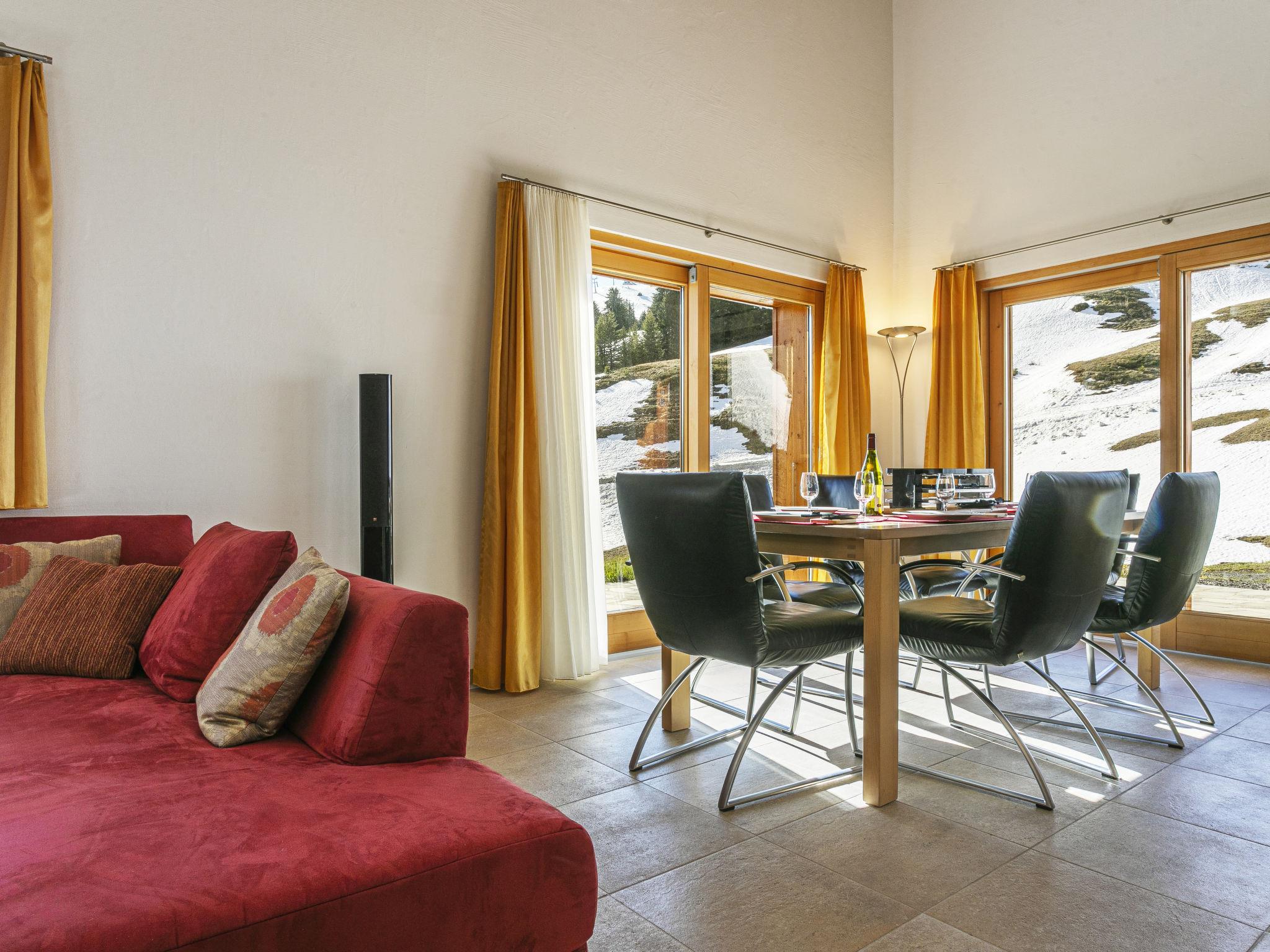 "Martens", 4-room chalet 150 m2 on 2 levels, south-west facing position. Luxurious and tasteful furnishings: living/dining room with panoramic window with open-hearth fireplace and TV. Exit to the terrace. 1 room with 1 double bed (160 cm, length 200 cm), bath/WC. Exit to the terrace. Open kitchen (oven, dishwasher, 4 ceramic glass hob hotplates, toaster, kettle, microwave, electric coffee machine, Capsules for coffee machine (Nespresso) extra, raclette grill, fondue Set (chinoise, cheese)). Sep. WC. Upper floor: 1 room with 1 double bed (160 cm, length 200 cm). 1 room with 1 double bed (160 cm, length 200 cm). Gallery. Shower/WC. Very beautiful view of the mountains, the ski run, the countryside and the resort. Facilities: Internet (WiFi). Please note: non-smokers only. In winter the access road to the chalt is closed due to snow. Multipass is included.