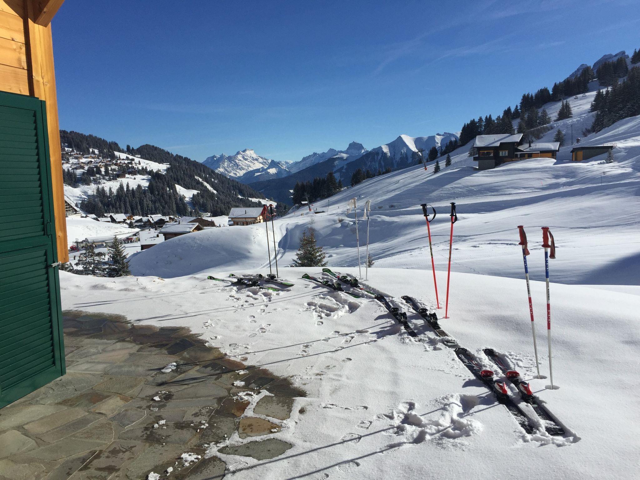 Beautiful, luxurious chalet "Chalet Martens", 2 storeys. In a quiet, sunny, elevated position, directly by the skiing area. In the house: storage room for skis, central heating system, washing machine, tumble dryer. Steep footpath to the house. Parking at the house, in winter 500 m public car park. Grocery 1 km, supermarket 9 km, restaurant 300 m, bus stop "Les Crosets, télésiège" 550 m, railway station "Val d'Illiez" 9.5 km. Sports centre 9 km, chair lift 200 m, cross country ski track 10 km, ice rink 9 km. Well-known ski regions can easily be reached: Portes du Soleil. Please note: In case of good snow conditions, the house is accessible on skis.