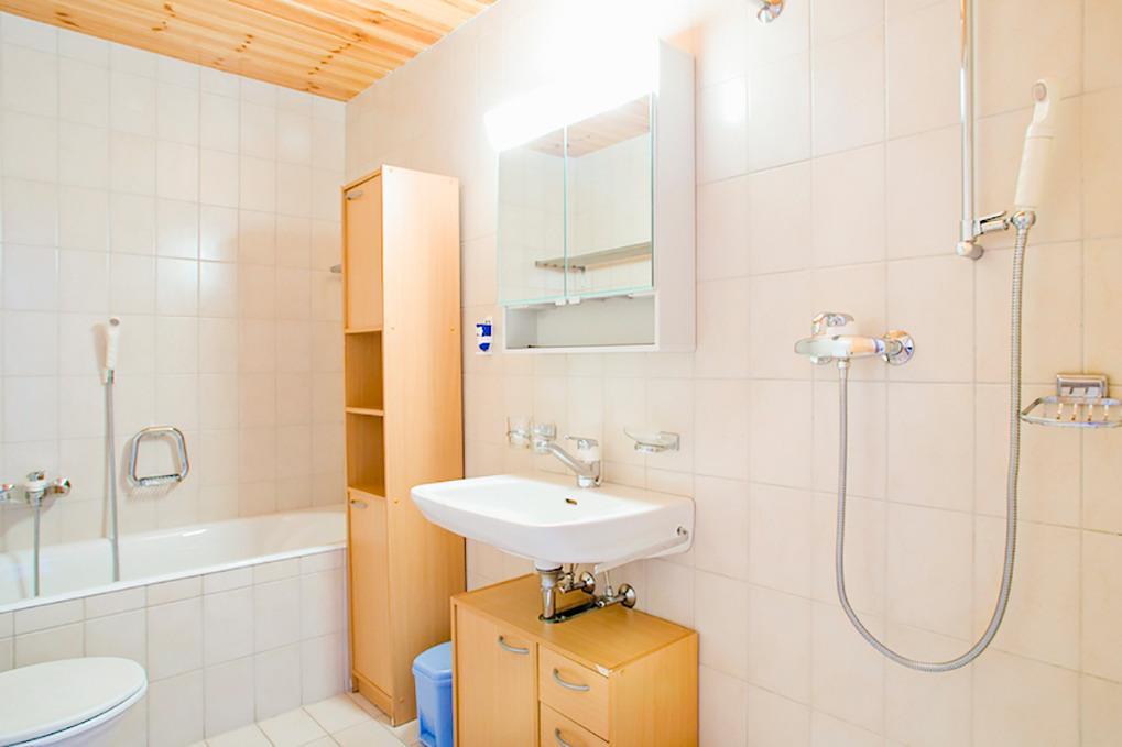 CH 388.80 Wohnung 2-4 Pers.: 2-Zimmerwohnung mit 46 qm Wohnfläche. Schöner, großer Wohnraum mit Kamin, TV, Sitzgruppe (Schlafcouch 2 Pers.), Esstisch, Küchenzeile (Backofen, Spülmaschine). Balkon. Doppelzimmer. Bad: Bw, Du, Wb, WC.