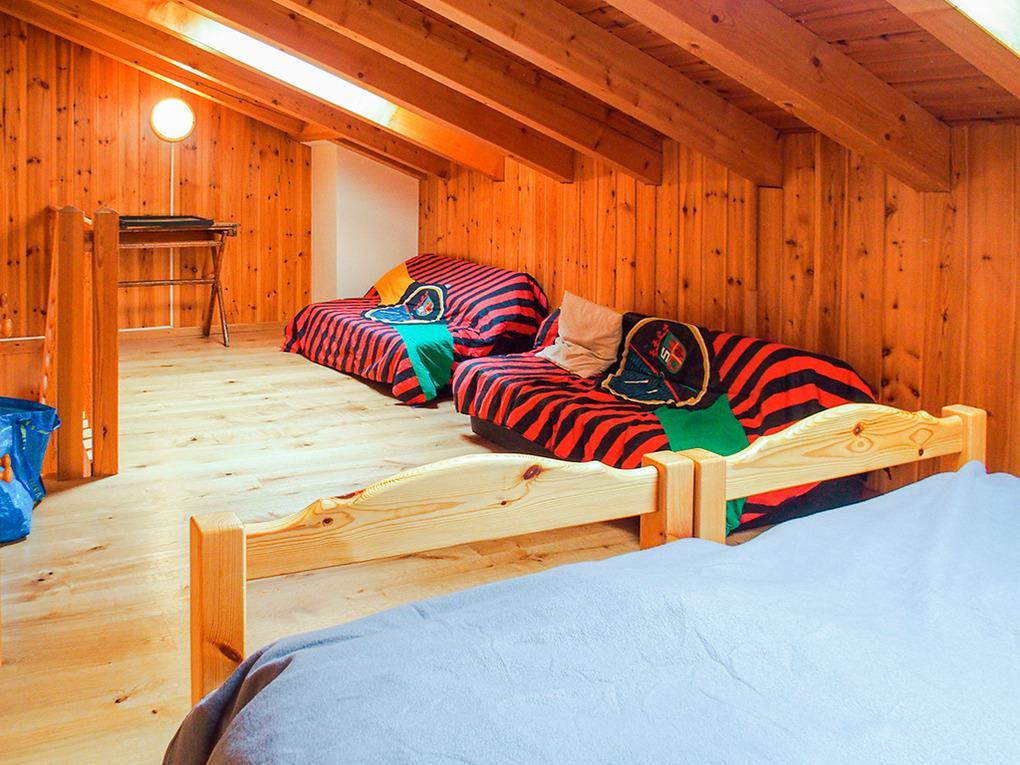 CH 388.82 Wohnung 4-8 Pers.: 4-Zimmerwohnung mit 90 qm Wohnfläche über 2 Etagen. 2. Etage: Schöner, großer Wohnraum mit Kaminofen, TV, Sitzgruppe, Esstisch, Küchenzeile (Backofen, Mikrowelle, Spülmaschine). Balkon. Doppelzimmer. Zwei 2-Bettzimmer mit Etagenbett. Bad: Bw, Du, Wb, WC. Vom Wohnraum aus Treppe ins Dachgeschoss mit Schrägen: große Galerie mit 2 Einzelbetten.