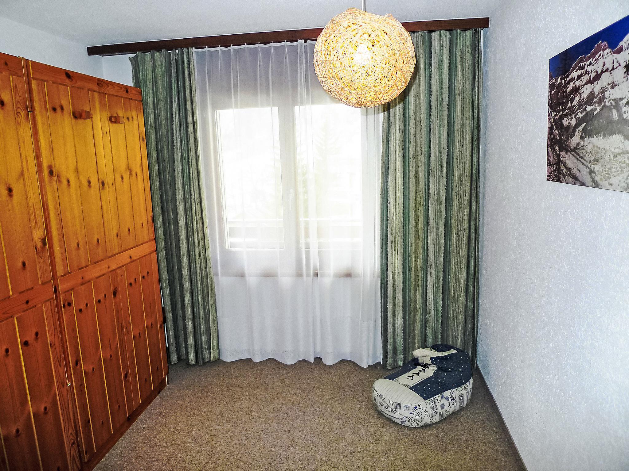 2-room apartment 65 m2 on 3rd floor. Practical and cosy furnishings: living/dining room with 1 double fold-away bed (140 cm, length 190 cm), dining table and cable TV (flat screen), hi-fi system. Exit to the balcony, south facing position. 1 room with 2 fold-away beds. Kitchen (4 hot plates, oven, microwave, electric coffee machine). Bath/WC. Balcony furniture, deck chairs (2). Very beautiful view of the mountains and the resort. Facilities: baby cot for up to 2 year olds. Internet (WiFi, free). Parking space n 10 (roofed). Please note: non-smokers only.