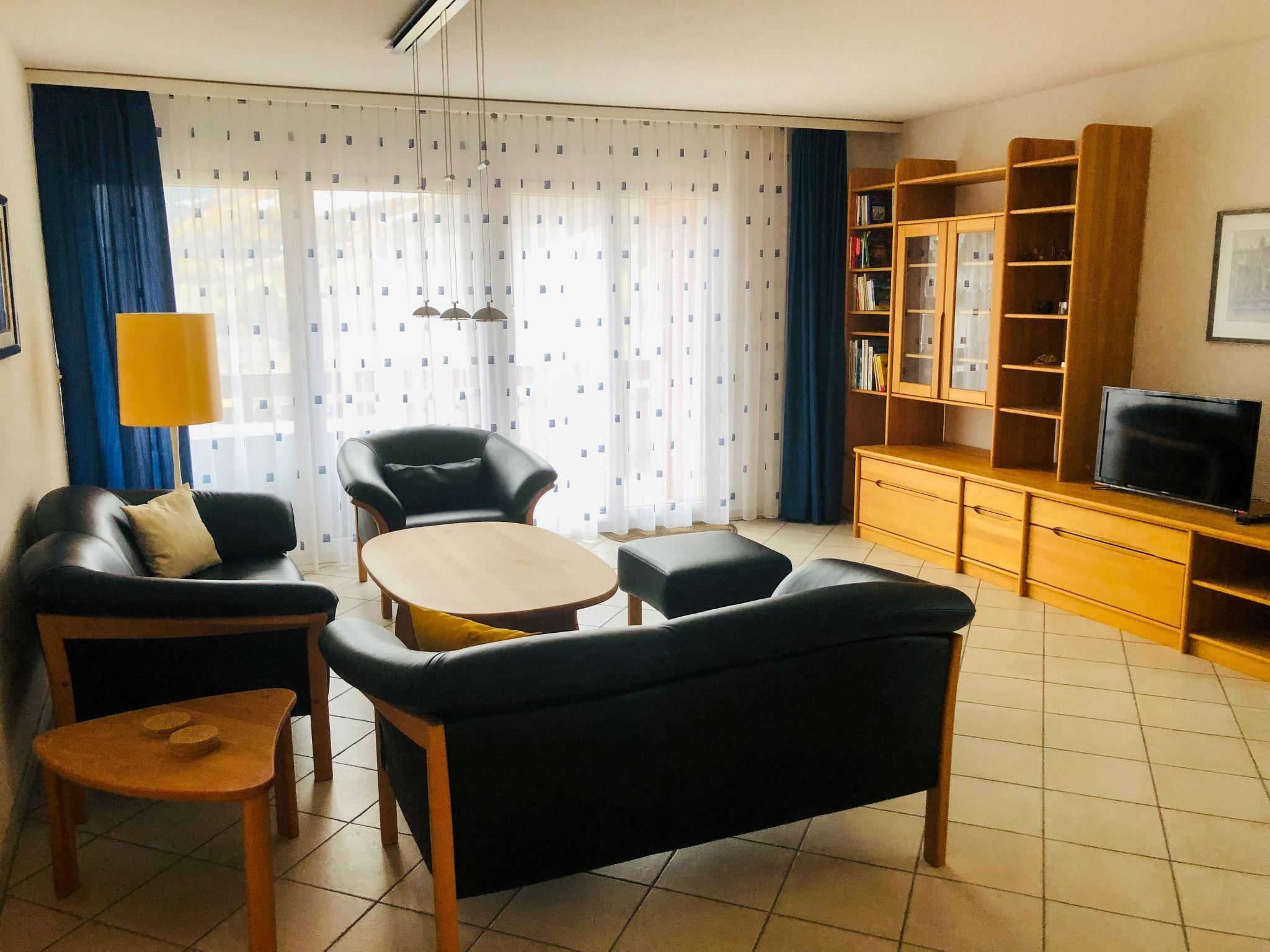 3-room apartment 90 m2. Cosy furnishings: living/dining room with cable TV (flat screen), radio. Exit to the balcony. 2 double bedrooms, each room with 1 double bed (2 x 90 cm, length 200 cm). Open kitchen (oven, dishwasher, 4 ceramic glass hob hotplates, microwave). Sep. WC, bath/shower/WC. Balcony 6 m2. Beautiful view of the mountains and the resort. Facilities: Internet (WiFi, free). Please note: non-smokers only. Maximum 1 pet/ dog allowed.