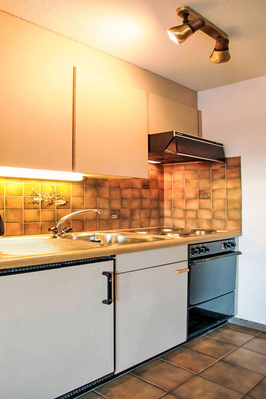 1-room studio 40 m2, on the ground floor. Cosy furnishings: living/sleeping room with 1 french bed (180 cm, length 200 cm), cable TV (flat screen). Exit to the garden, to the patio, south facing position. Open kitchen (3 hot plates, oven, electric coffee machine, Capsules for coffee machine (Delizio) extra). Shower/WC. Patio. Terrace furniture, deck chairs. Very beautiful view of the mountains and the resort. Facilities: hair dryer. Internet (WiFi, free). Please note: non-smokers only. Maximum 2 pets/ dogs allowed. Access to ground-floor apartment via stairs, 2 flights. Not suitable for disabled people.