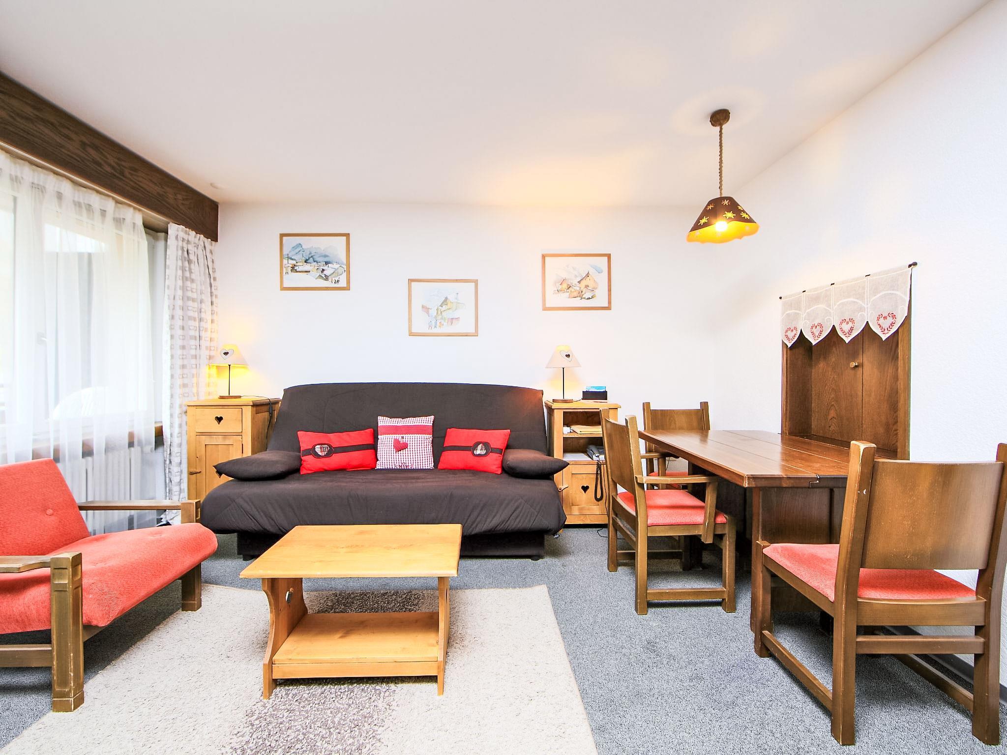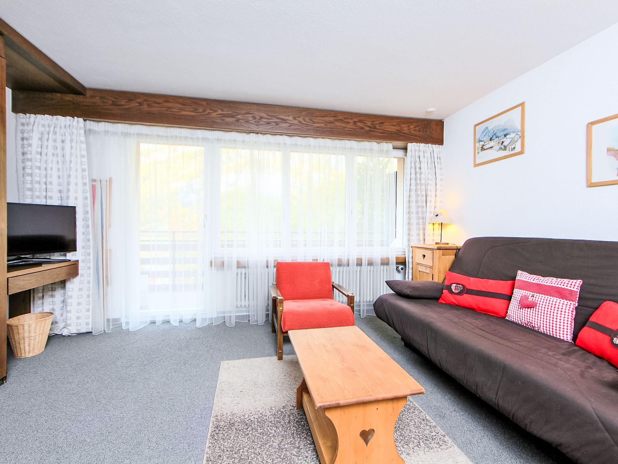 1-room apartment 43 m2 on 1st floor. Practical and cosy furnishings: living/dining room with 2 fold-away beds, TV and cable TV (flat screen). Exit to the balcony. Kitchen (oven). Bath/WC. Balcony. Balcony furniture. Beautiful view of the mountains, the countryside and the resort. Facilities: Internet (WiFi, free). Please note: non-smokers only.