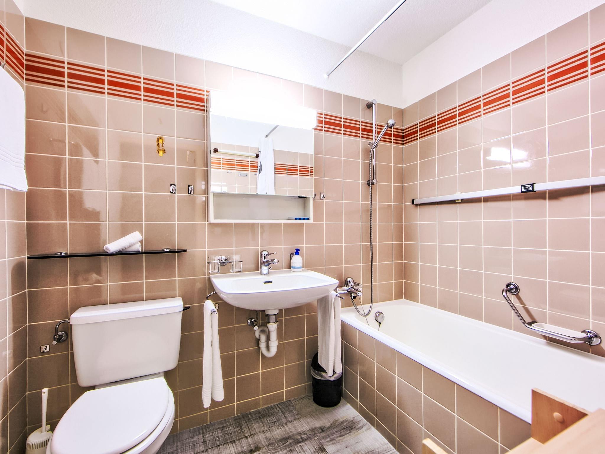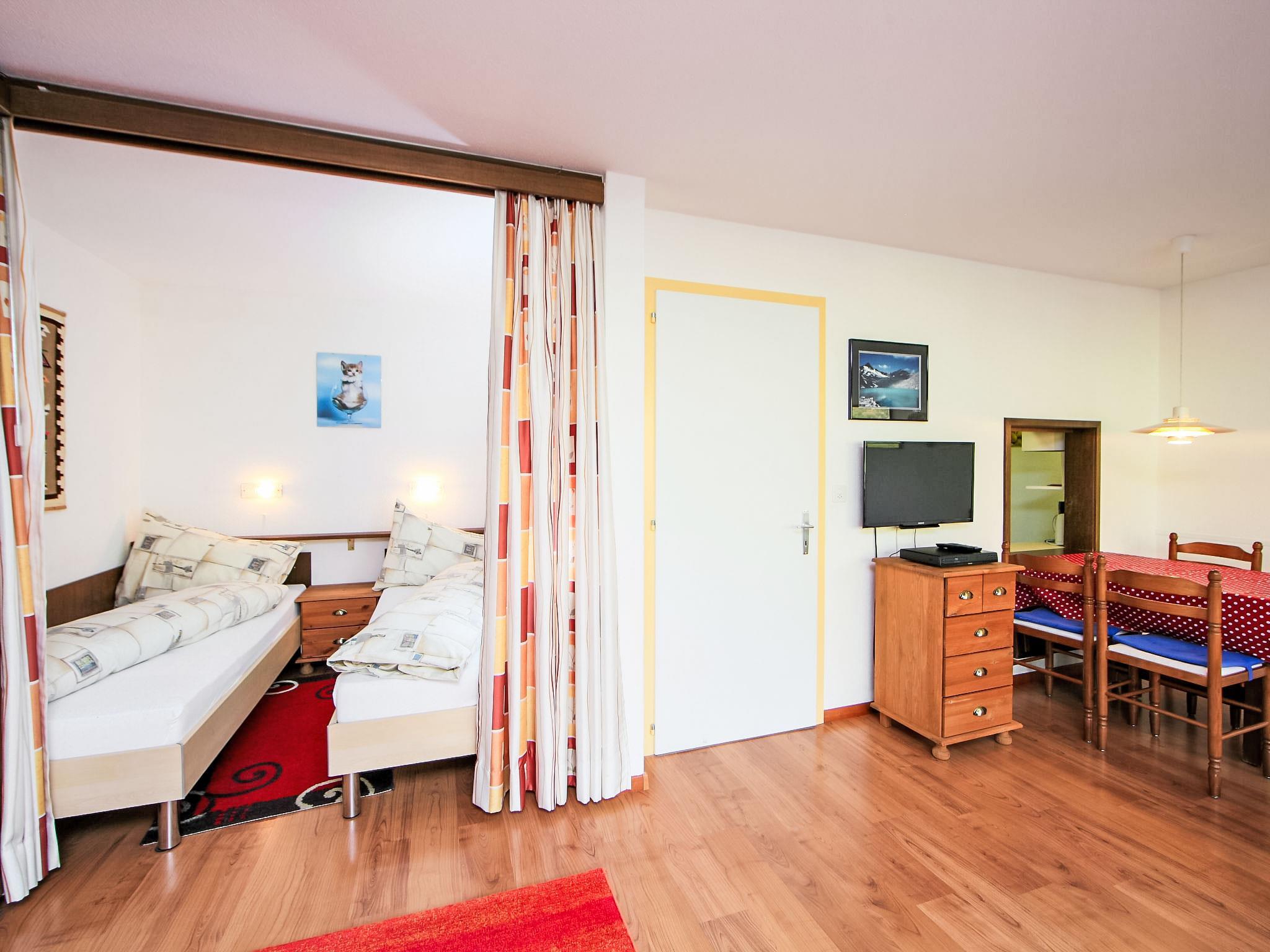 1-room apartment 50 m2 on 3rd floor. Practical furnishings: living/dining room with 2 fold-away beds and cable TV (flat screen), hi-fi system. Alcove with curtain with 2 beds. Kitchen (3 hot plates, oven, electric coffee machine, Capsules for coffee machine (Nespresso) extra). Bath/WC. Balcony. Terrace furniture. View of the mountains and the valley. Facilities: Internet (WiFi, free). Please note: non-smokers only.
