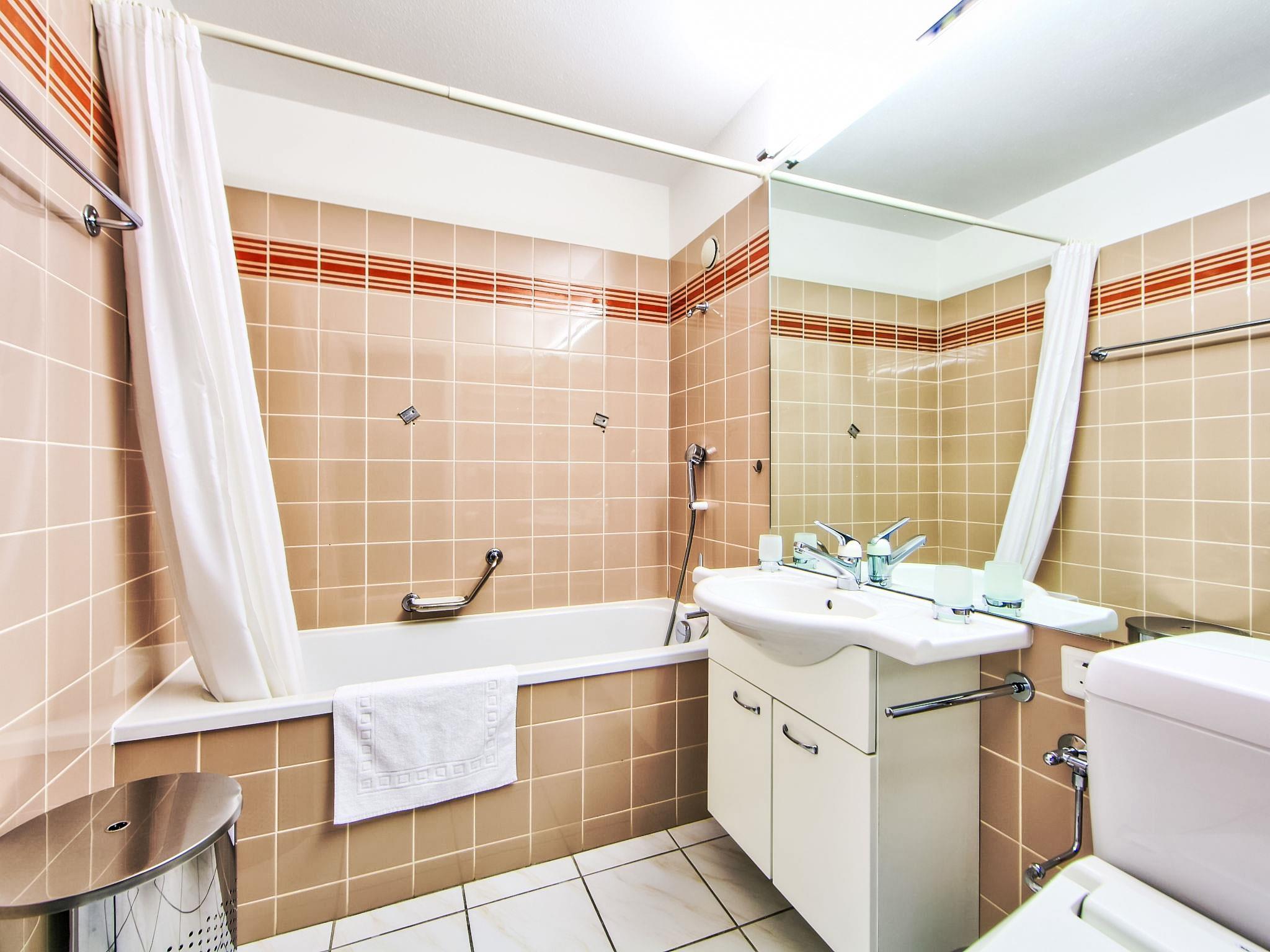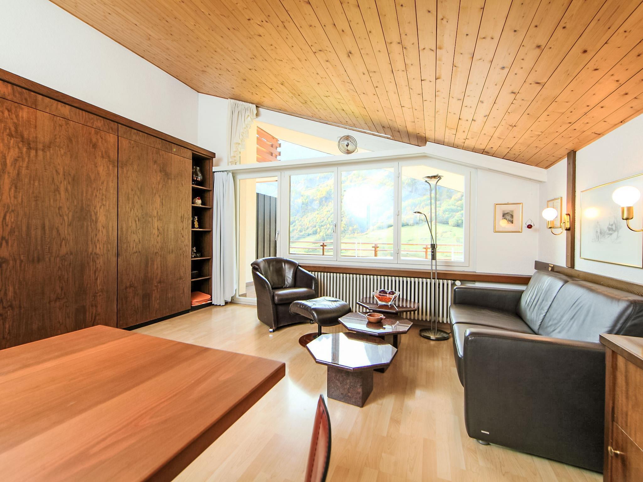 2-room apartment 58 m2 on 4th floor. Tasteful furnishings: living/dining room with 2 fold-away beds and cable TV (flat screen). 1 double bedroom. Kitchen (oven, dishwasher, 4 ceramic glass hob hotplates, electric coffee machine, Capsules for coffee machine (Nespresso) extra). Bath/WC, sep. WC. Balcony. Terrace furniture. View of the mountains and the valley. Facilities: Internet (WiFi, free). Please note: non-smokers only. Maximum 1 pet/ dog allowed.