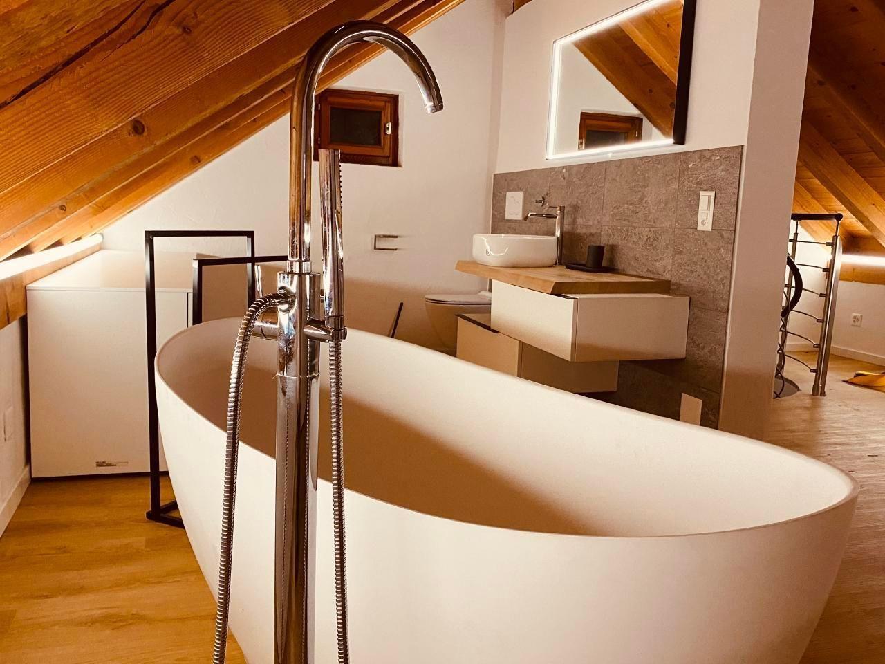 Inside, the house is spread over 3 floors connected by a charming spiral staircase. On the upper floor, you will find a romantic attic room with a double bed (160x200 cm) and an open-plan bathroom with a freestanding bathtub from which to admire the valley below. On the second floor, a room with a 120x200 cm bed offers a wide view, and a second room has two single beds (90x200 cm). The bathroom, complete with shower and toilet, provides privacy and comfort. On the first floor, next to the living room with fireplace, there is a large and super-equipped kitchen, equipped with combi-oven, refrigerator, induction stove, dishwasher and much more, ideal for preparing delicious dinners to be enjoyed on the extendable table or on the comfortable sofa in front of the TV.