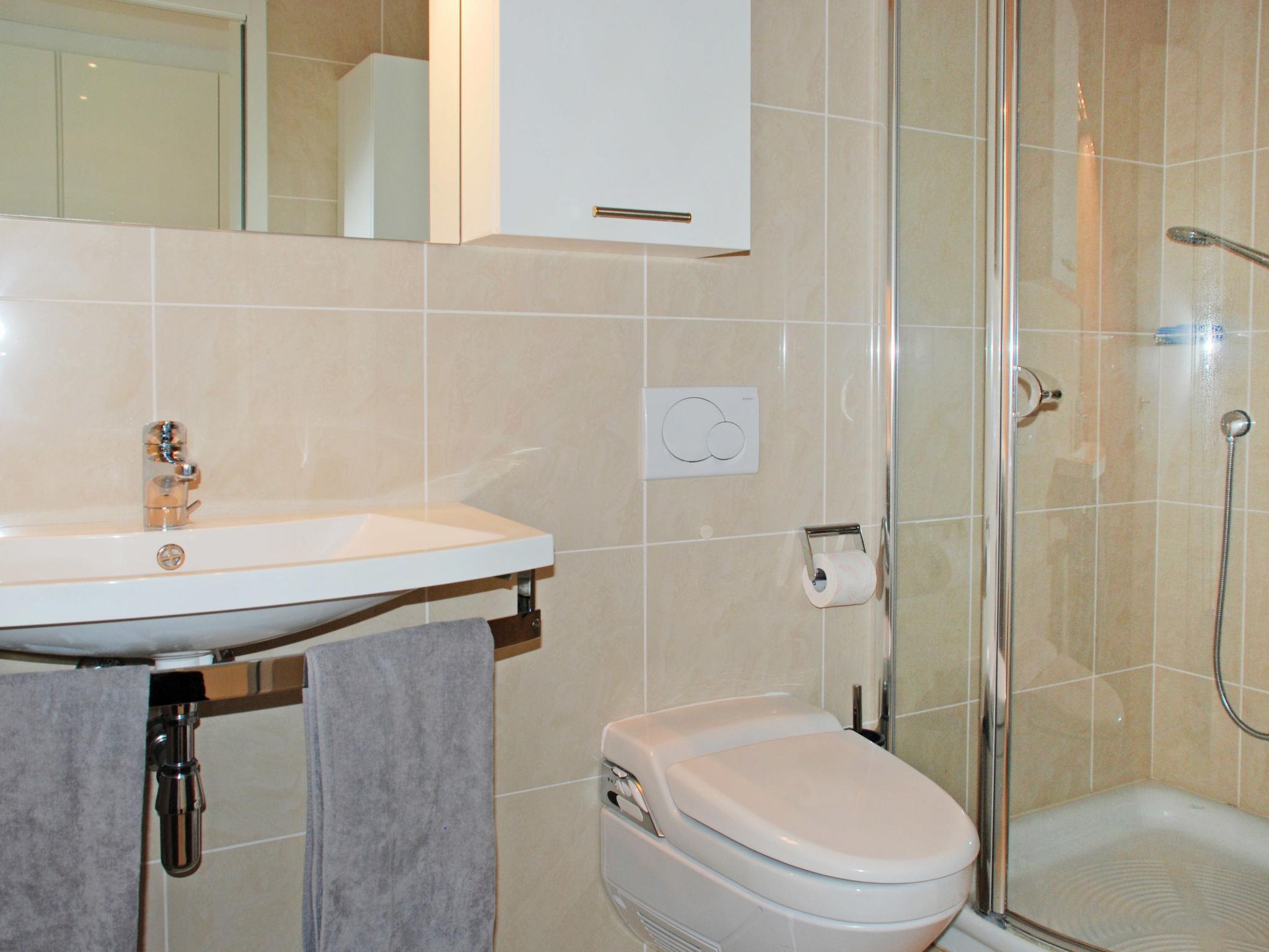 "Vista Panorama", 1-room apartment 50 m2 on 3rd floor, south facing position. Spacious and bright, renovated in 2019, comfortable and modern furnishings: open large living/sleeping room with panoramic window with 1 french bed (160 cm, length 200 cm), dining table and cable TV (flat screen). Exit to the terrace. Large, open kitchen (oven, dishwasher, 4 ceramic glass hob hotplates, freezer, electric coffee machine, Capsules for coffee machine (Delizio)) with dining table. Shower/WC. Electric heating. Large terrace 25 m2. Terrace furniture (2). Marvellous panoramic view of the lake, the mountains, the valley, the countryside and the resort. Facilities: iron, children's high chair, baby cot for up to 2 year olds (extra), hair dryer. Internet (WiFi, free). Please note: non-smokers only, no parking. NL-00005181