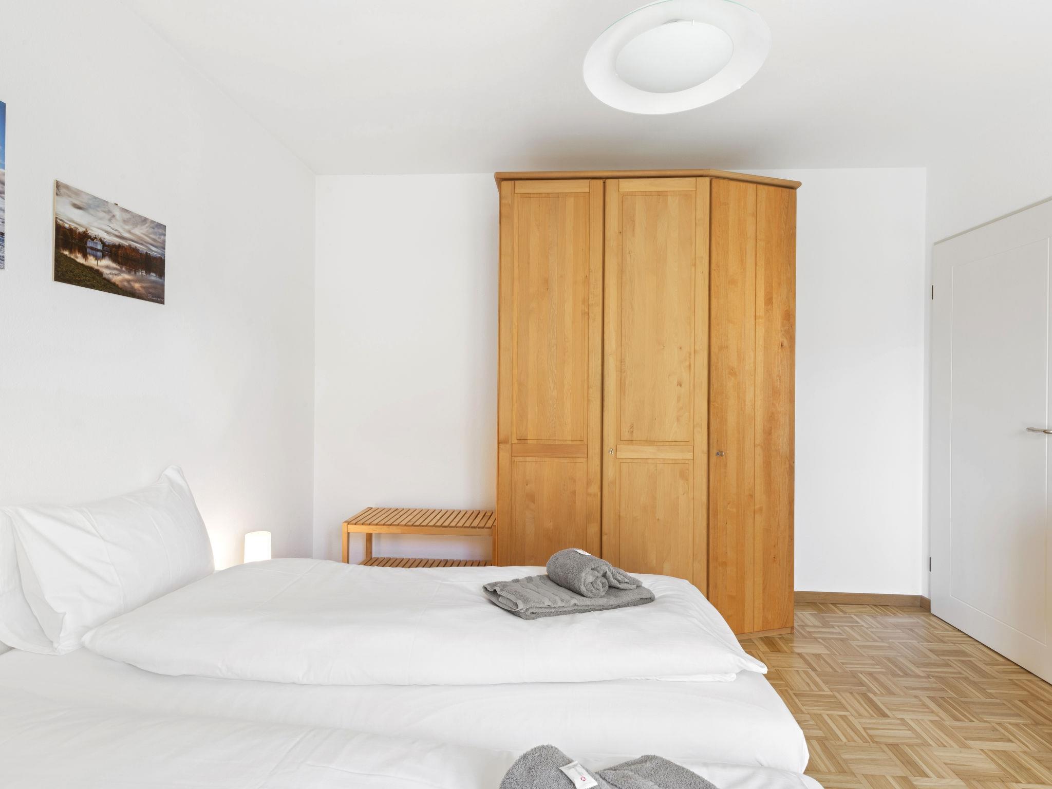 "Robinia-City", 2-room apartment 45 m2 on 4th floor, south-west facing position. Bright, comfortable and cosy furnishings: open living/dining room with dining table and cable TV (flat screen), radio. Exit to the balcony. 1 double bedroom with 1 double bed (2 x 90 cm, length 200 cm). Small, open kitchen (oven, 4 ceramic glass hob hotplates, toaster, kettle, microwave, electric coffee machine, Capsules for coffee machine (Delizia) extra, raclette grill, fondue Set (cheese)). Shower/WC. Floor heating. Balcony. Balcony furniture, deck chairs (1). Beautiful view of the mountains, the garden, the countryside and the resort. Facilities: iron, children's high chair, baby cot for up to 2 year olds (extra), hair dryer. Internet (WiFi, free). Parking space n 6. Please note: non-smokers only. Maximum 1 pet/ dog allowed. NL-00006477