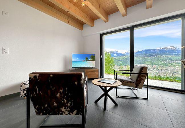 Set in lush greenery, it enjoys a panoramic view of the Rhône plain and the Bernese Alps.
