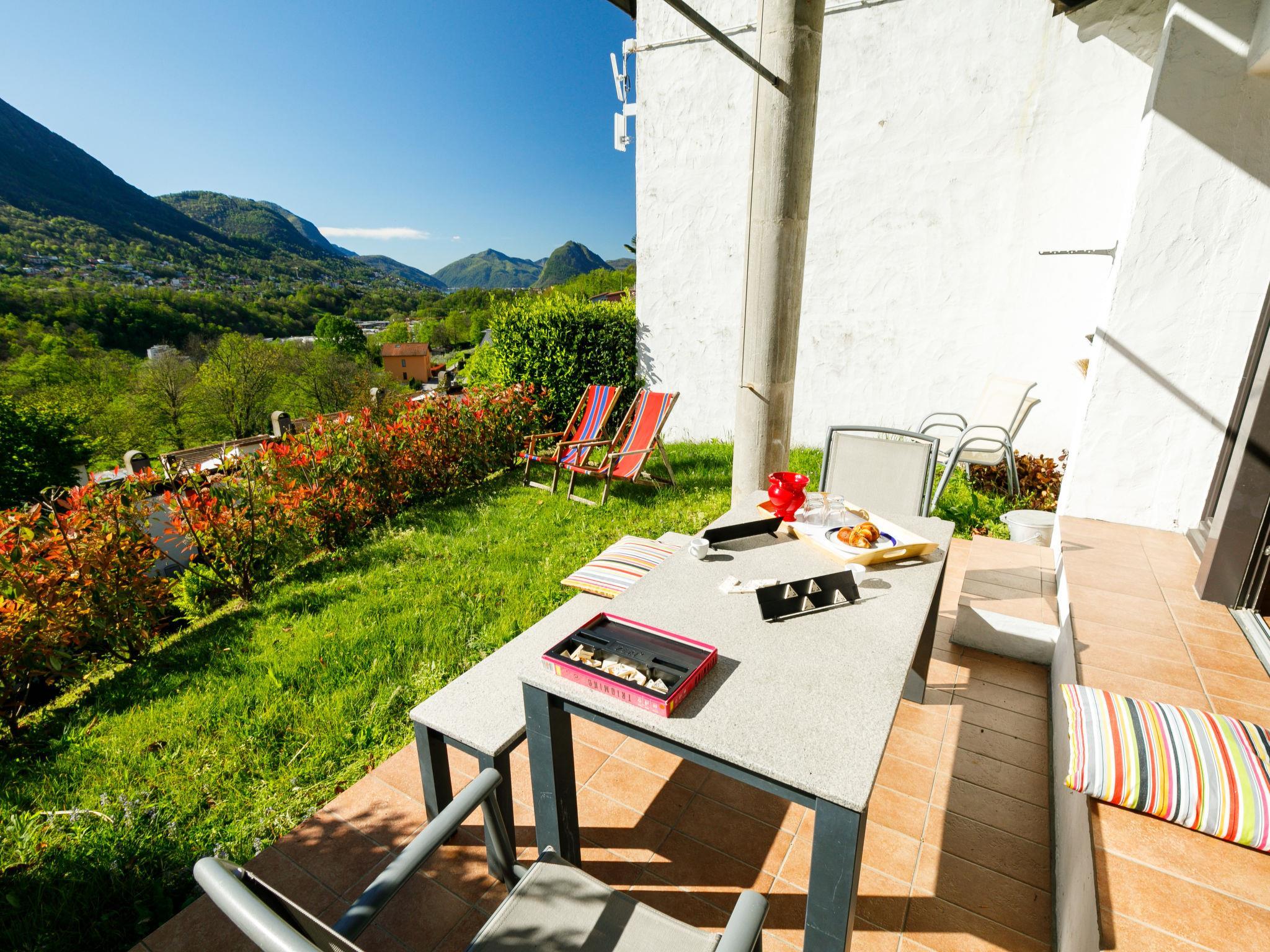 "Villaggio Sureggio A1 mit TicinoTicket", 3-room apartment 60 m2 on 2 levels. Comfortable and cosy furnishings: open living/sleeping room with panoramic window with 2 beds (80 cm, length 200 cm), dining table and satellite TV. Exit to the patio, south facing position and east facing position with 2 beds (80 cm, length 200 cm). Open kitchen (oven, 4 ceramic glass hob hotplates, toaster, kettle, electric coffee machine, Capsules for coffee machine (Nespresso,mitbringen) extra). Shower/WC. Electric heating. Upper floor: 1 double bedroom with 1 double bed (2 x 90 cm, length 200 cm) with 1 x 2 bunk beds (90 cm, length 200 cm). Natural stone floors. Patio. Terrace furniture, deck chairs. Very beautiful view of the mountains and the countryside. Facilities: hair dryer. Internet (WiFi). Parking space n 7 (extra, roofed). Please note: suitable for families. Non-smokers only. Maximum 1 pet/ dog allowed. Private entrance. NL-00011990
