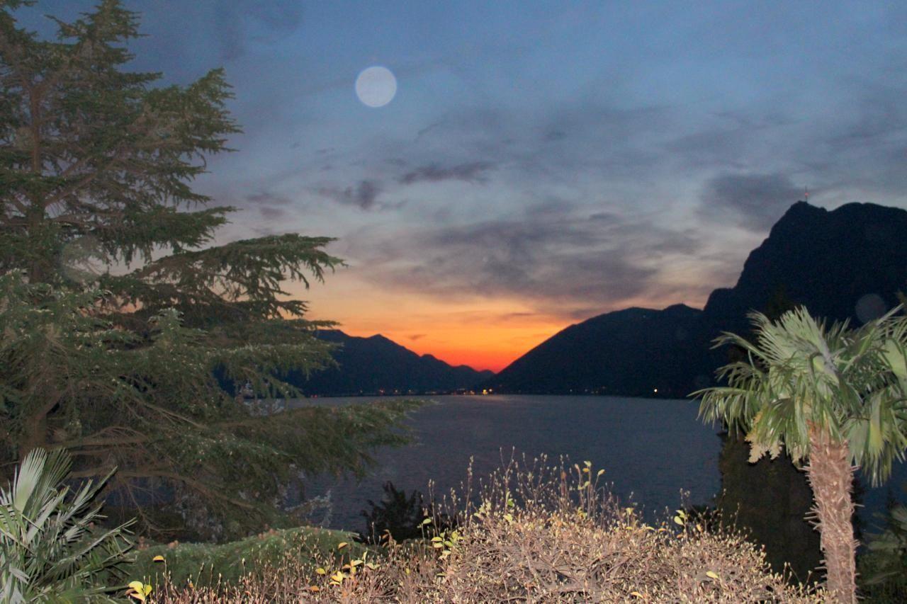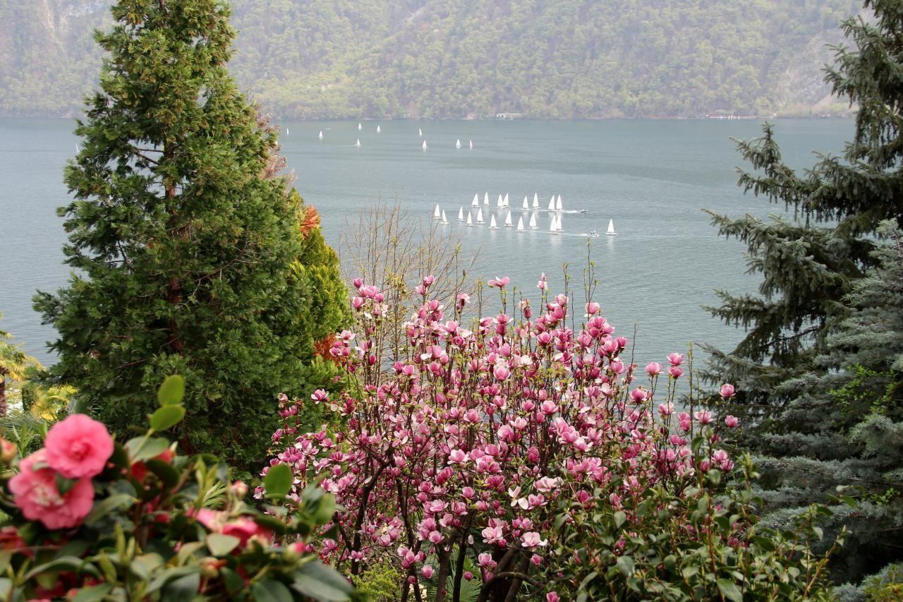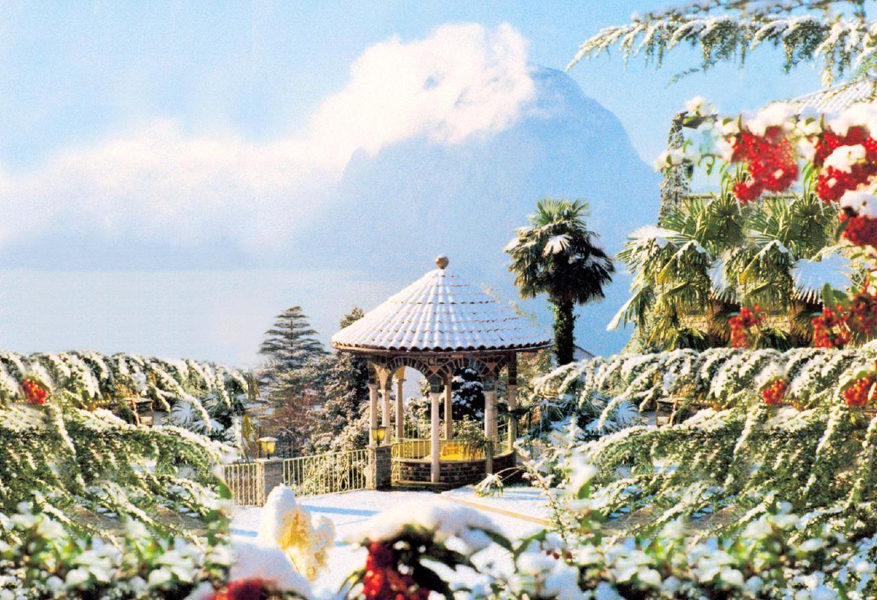 entrance from the outside -- with terraces/balconies for 1-8 persons is located in the exclusive district of Lugano-Castagnola at the foot of "Monte Bre" (the sunniest mountain in Switzerland). The extraordinary residence is enthroned above a terraced Mediterranean tree garden (close to nature) with palm trees between the private cul-de-sac Via Violetta and the ancient olive footpath from Lugano-Castagnola to the picturesque fishing village of "Gandria" (1.3 km).