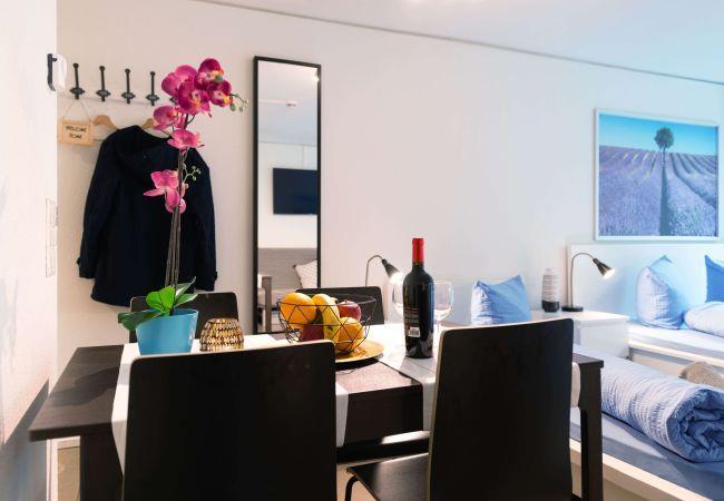 In this beautiful, exclusive and furnished 1.5 room apartment with four beds you can enjoy the highest comfort on 31m2 close to the centre, the apartment is equipped with a modern kitchen and a spacious bathroom. In the apartment there are one single bed, one double bed and a sofa with pull-out function. The kitchen is fully equipped for four persons with cutlery, crockery and pans and is equipped with two hotplates as well as a combination appliance that can be used both for baking and as a microwave. The bathroom has a shower, toilet, mirror cabinet, hair dryer, iron and ironing board. Bath towels and bed linen are provided. A small balcony is also part of the apartment and offers additional comfort.