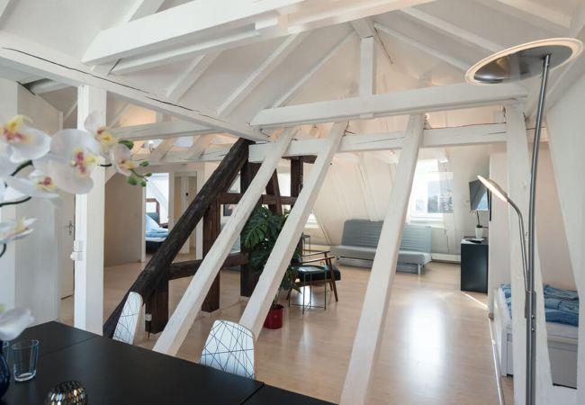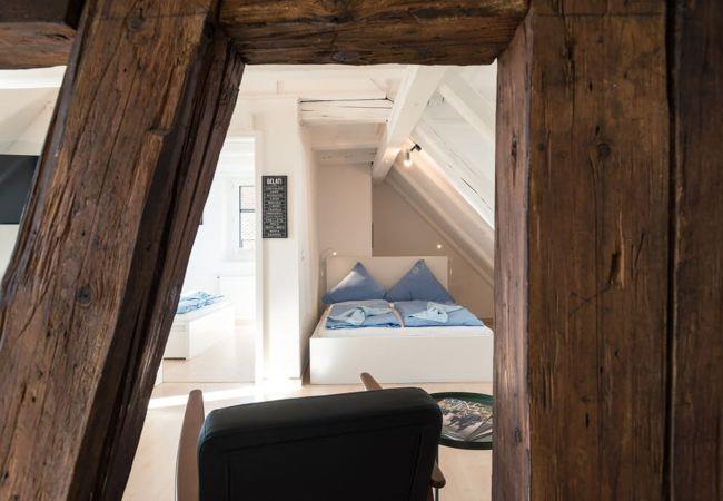 The holiday apartment called "Sun IV" lives up to its name. The apartment captivates by its unusual layout and its central location. From here you have a view of the world-famous Chapel Bridge and the Jesuit Church. The apartment has 3.5 rooms and can accommodate a total of seven guests. three double beds and a sofa bed are available. The apartment also has a private kitchen with all necessary utensils: cooker, fridge, oven, microwave and many small extras. In the bathroom you will find a toilet, shower, hair dryer and various hygiene articles. On your own terrace you can enjoy a wonderful view of the Reuss and can really relax on warm summer evenings.