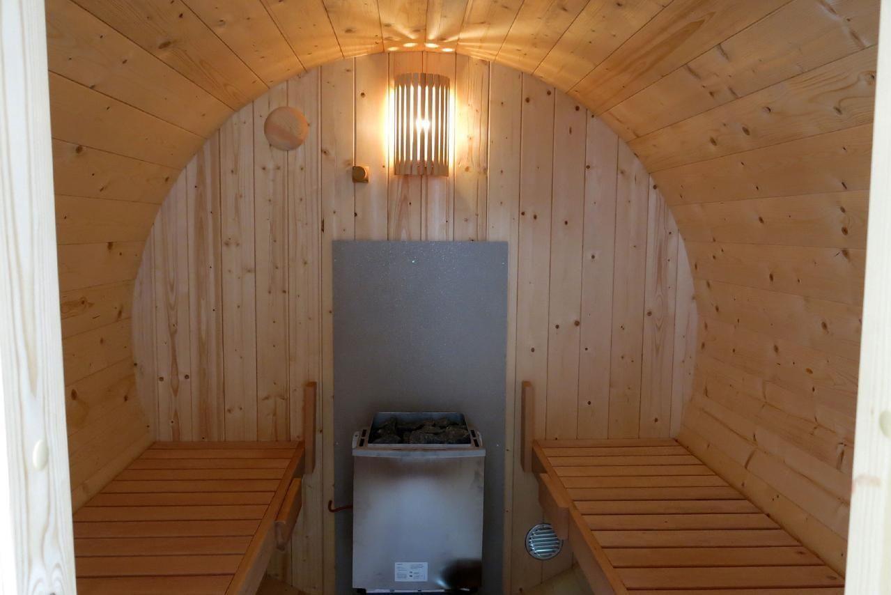 The outdoor area leaves nothing to be desired. A garden seating area with a barbecue and unique view invites you to spend unforgettable hours. For the ultimate relaxation experience, our Finnish barrel sauna is available for a fee - including two sauna towels for about 2½ hours of exclusive use. Here you can unwind completely undisturbed and enjoy the unique surroundings to the full.