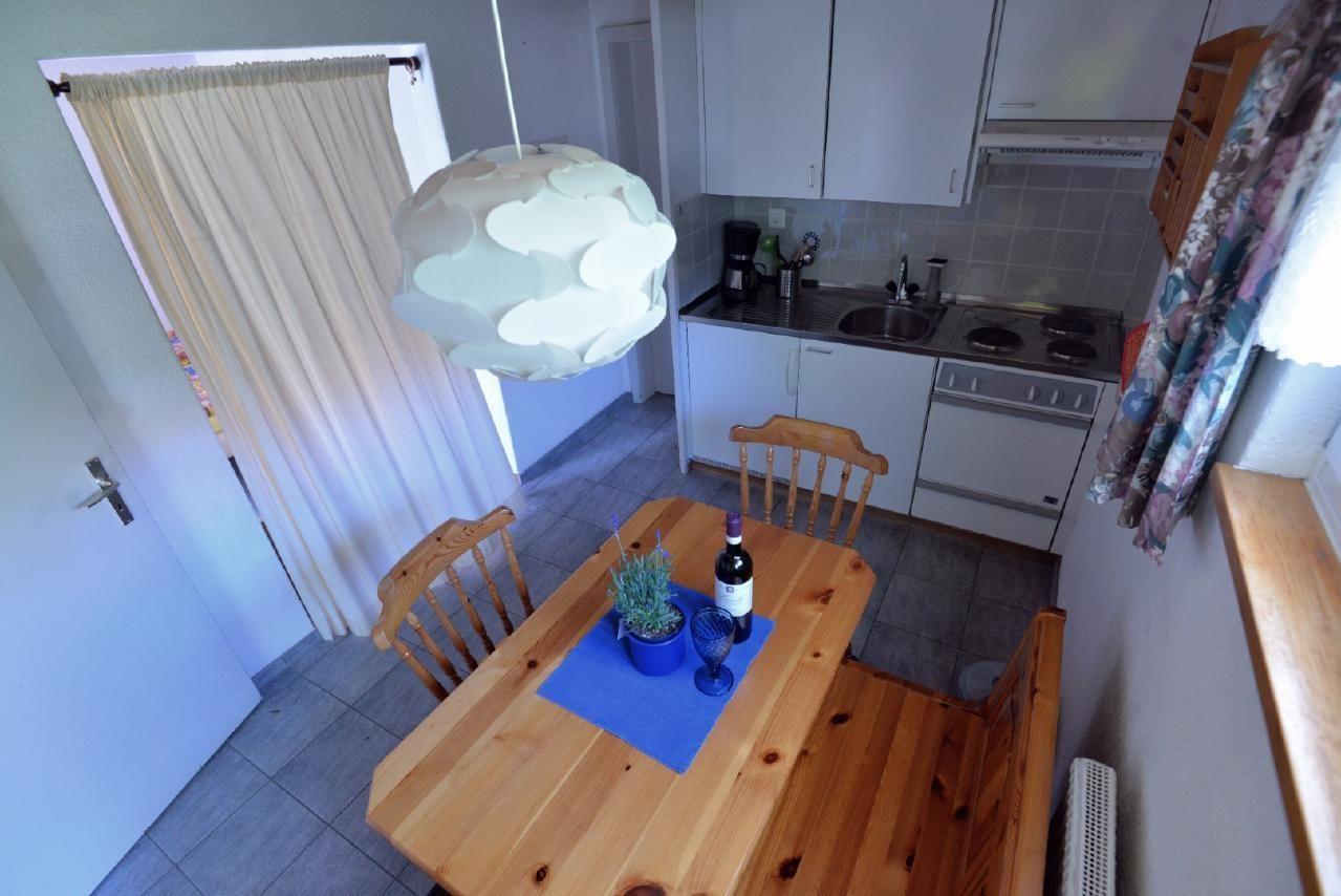 The spacious studio for 2 persons with private entrance is located in the basement of the 4-family house. The large window in the sleeping area offers a view of the mountain panorama. The studio is equipped with a fitted kitchen, dining table with corner bench for at least 4 people and a bathroom with shower, WC and bathtub. The sleeping area is separated from the living area by a curtain. An espresso coffee machine and a kettle are available for a relaxed breakfast. We are happy to provide a fondue or raclette set on request. For entertainment there is a TV and super-fast Wifi free of charge. Enjoy the breathtaking view from the private terrace in front of the studio or on the communal terrace in front of the house. Clean and well-groomed pets are welcome with prior notice. All flats in Chalet Böbs are non-smoking.