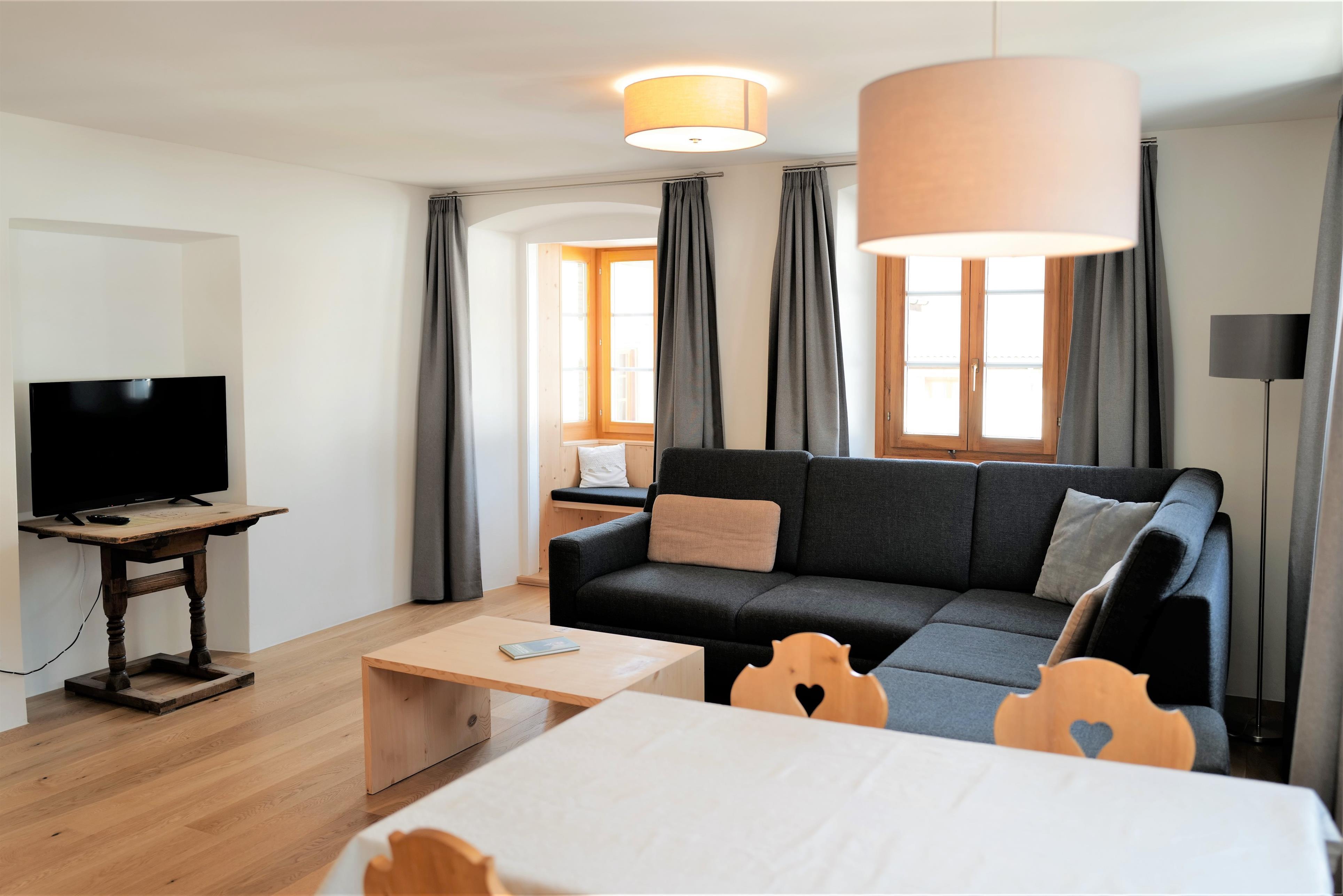 Das traditionsreiche Haus wurde 2018 komplett renoviert. Dabei wurde die historische Substanz weitgehend erhalten und die Räume sind mit vielen Antiquitäten eingerichtet. Alle Zimmer verfügen über Dusche/WC, Sat-TV, Radio. Die Appartements 45 bis 70 m2 gross und haben eine komplett ausgestattete Küche, Wohn-, Bade- und Schlafzimmer. Zudem ist das gesamte Haus Barrierefrei. Auf dem Frühstücksbuffet finden Sie regionale Produkte wie Bio-Käse, Honig oder hausgemachte Marmeladen. Im Café-Bistro servieren wir kleine Bündner Gerichte oder hausgemachte Pralinés.
