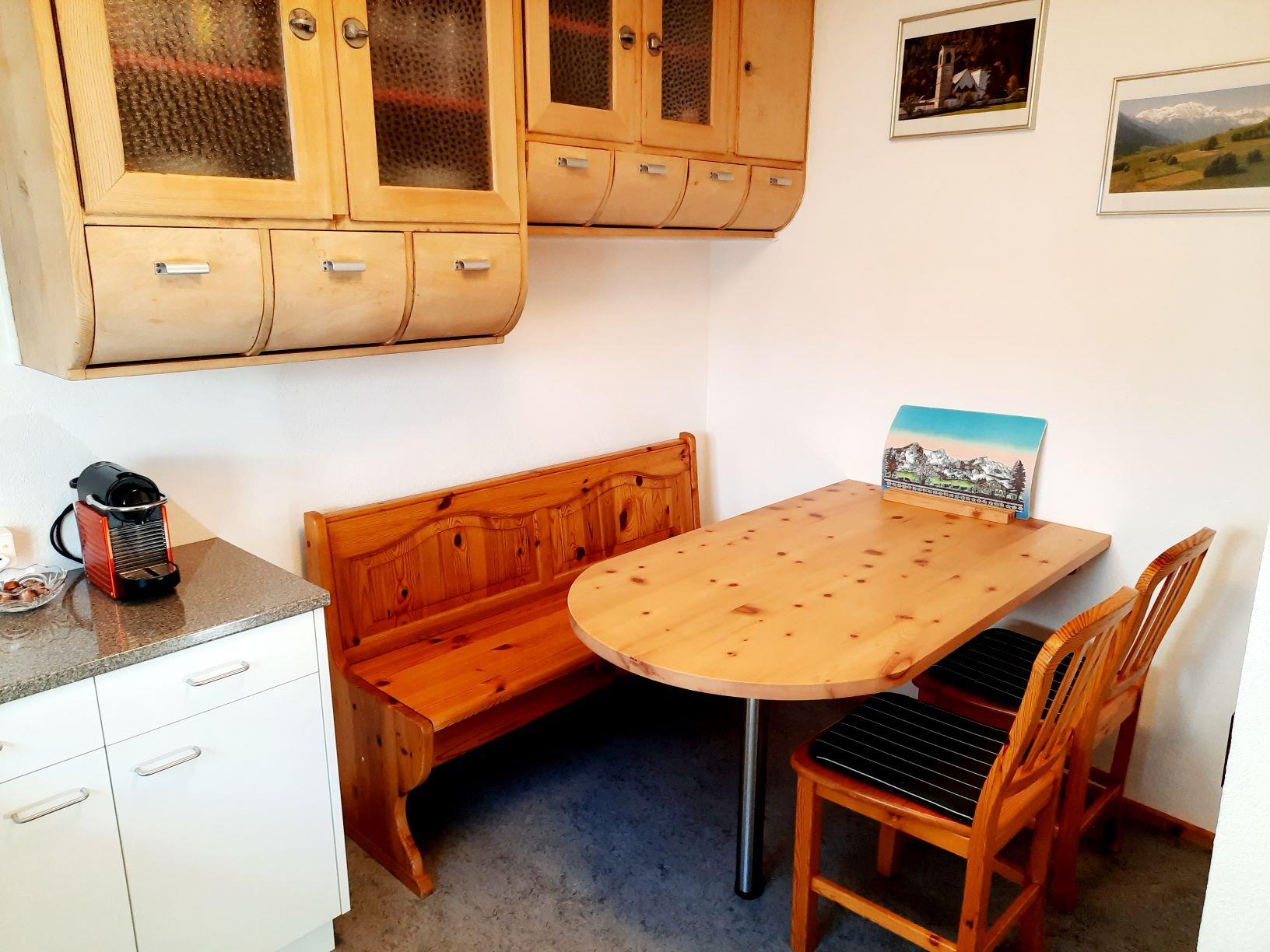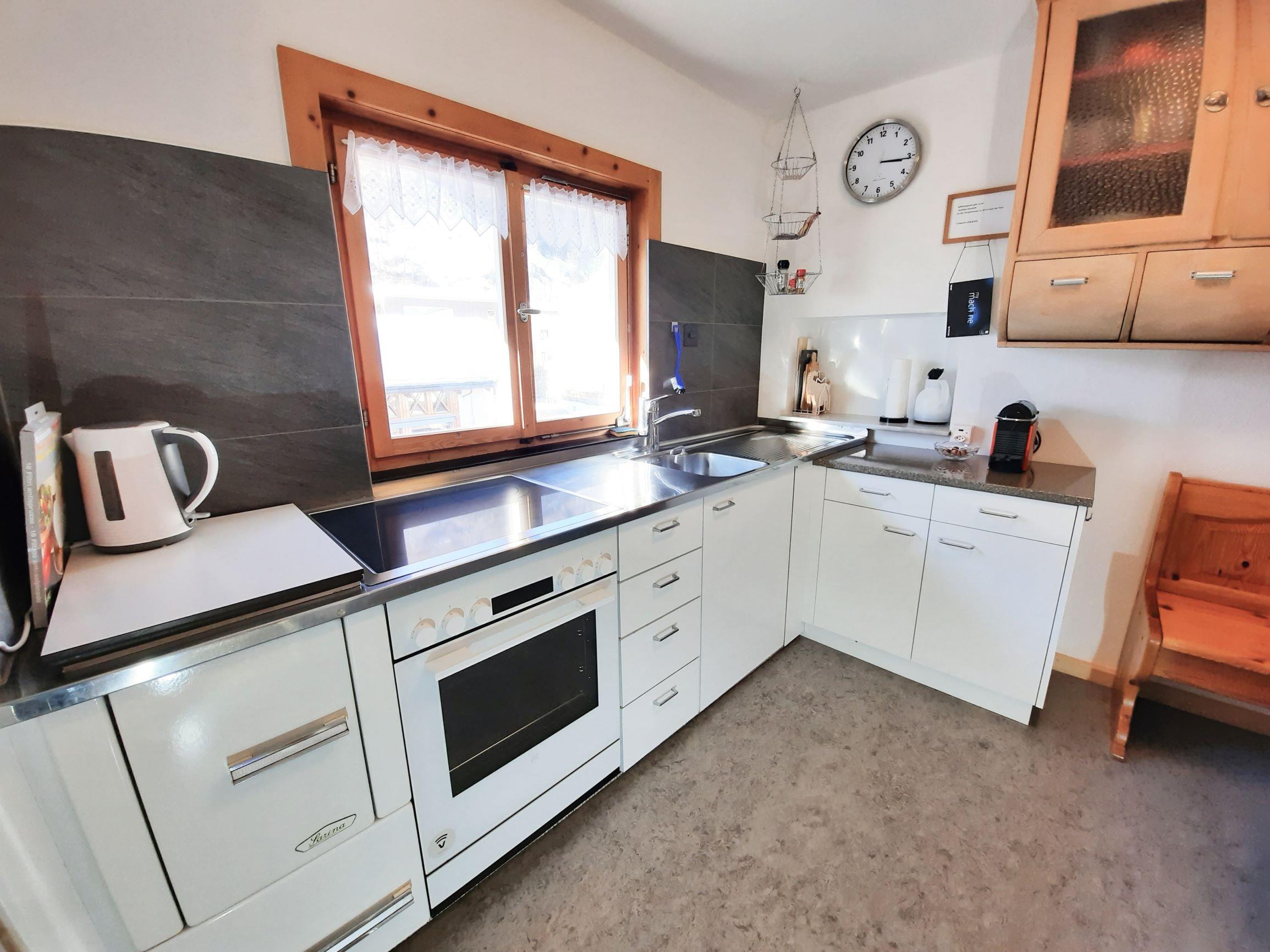 The holiday apartment is on the 2nd floor (the owner lives on the 1st floor). The large, neat apartment with 5 rooms has 95 m2. Kitchen with kitchen unit, table with 5 seats, Nespresso coffee machine (capsules can be bought on site). Living room with a nice tiled stove, SAT-TV. 1 bedroom with double-bed with a tiny balcony and beautiful panorama on our mountains, 1 bedroom with 2 beds, 1 bedroom with 1 bed (this room is also the passage to the bathroom, there is a curtain as sight protection. Cot for children available. 1 Bathroom.