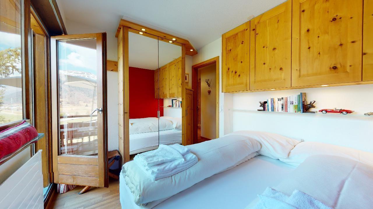 Die gepflegte Wohnung verfügt über ein Schlafzimmer mit einem Doppelbett und ein kleines Schlafzimmer mit Etagenbett. Somit eignet sich die Wohnung sowohl für Paare als auch für eine Familie mit Kleinkindern. Vom Elternschlafzimmer gibt es einen Zugang zur Terrasse (Gartenmöbel sowie Sonnenschirm vorhanden). Ein Badezimmer mit Dusche steht zur Verfügung und ebenso eine komplett ausgestattete Küche mit Kombi Steamer. Das Wohnzimmer lädt zum Verweilen ein und verfügt über ein Sofa mit TV, einem Esstisch und ein Cheminèe. WLAN-Internet und Swisscom-TV stehen zur Verfügung. Ein Garagenplatz kann kostenpflichtig hinzugebucht werden und befindet sich in unmittelbarer Nähe.