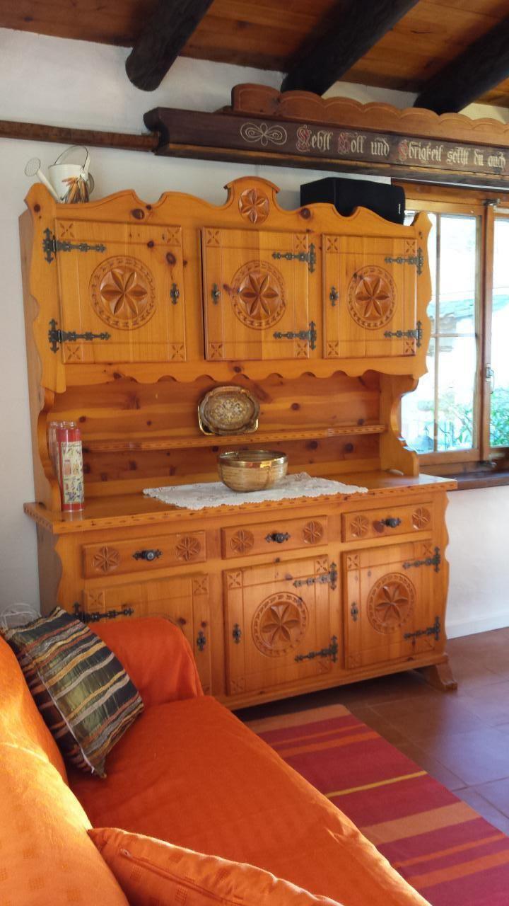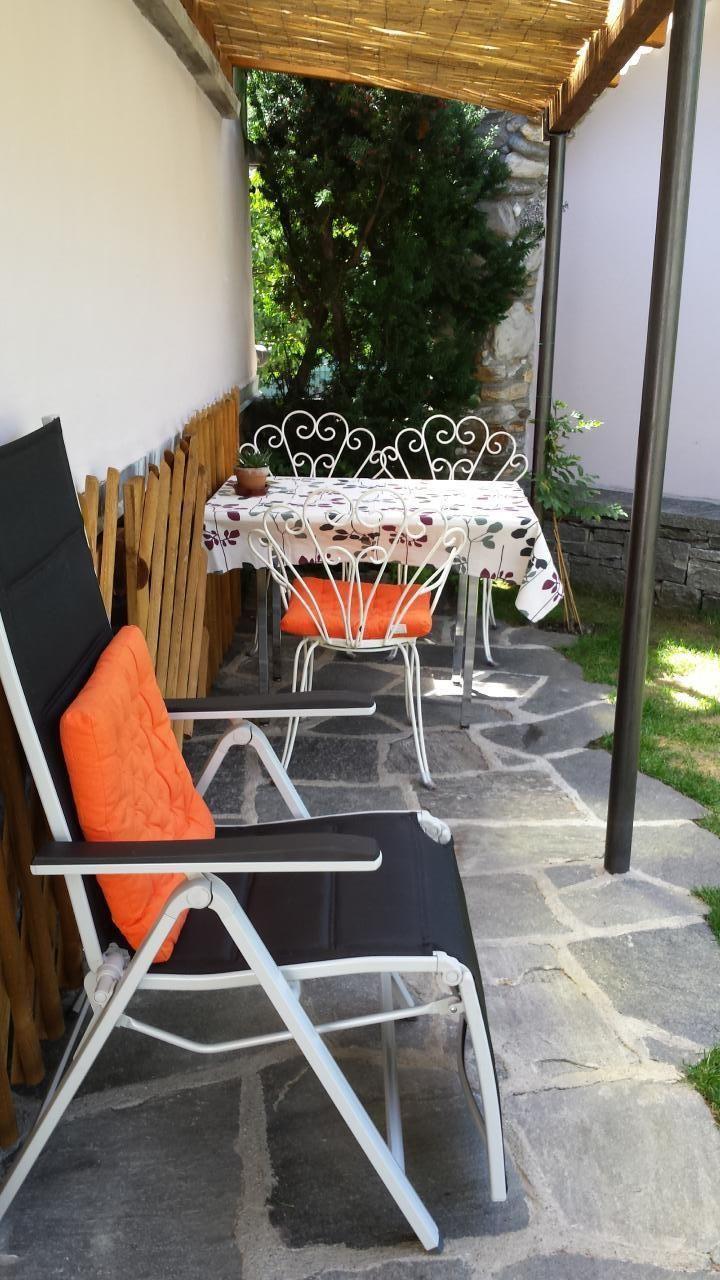 The holiday home 'Atelier' is located in a part of our property that once belonged to an eclectic artist. In the centre of Maggia, it has a common entrance through a rose garden with the 'Studio' holiday home, a small private garden and a view of the mountains. From the house it is only a few minutes' walk to the village's main square, bars and restaurants, bakery, supermarket, post office, bank, doctor's office, pharmacy, the Maggia river and the beaches. The style is rustic: wood, stone, local granite. Our recent conservative restoration was deliberately low environmental impact and paid particular attention to the use of environmentally and health-friendly materials. The rooms are cosy and comfortable, with great attention to detail. The corner kitchen has an oven, dishwasher, refrigerator and ceramic hob. Various small appliances are available such as: capsule and filter coffee machine, kettle, toaster, etc. The kitchen is also stocked with a 'starter-kit', i.e. spices, salt, coffee, tea, sugar, flour, oil, etc. The buffet cabinet is amply equipped with kitchen and table accessories. The separate double bedroom has bedside tables, a large four-door wardrobe, a desk and a view of the inner garden. The comfortable sofa bed in the living room (160x195cm) can accommodate two more people. The bathroom has a shower/wc and hairdryer. The small private garden with pergola is furnished (table, chairs, deckchairs, granite bench and barbecue). We use ecological cleaning products.