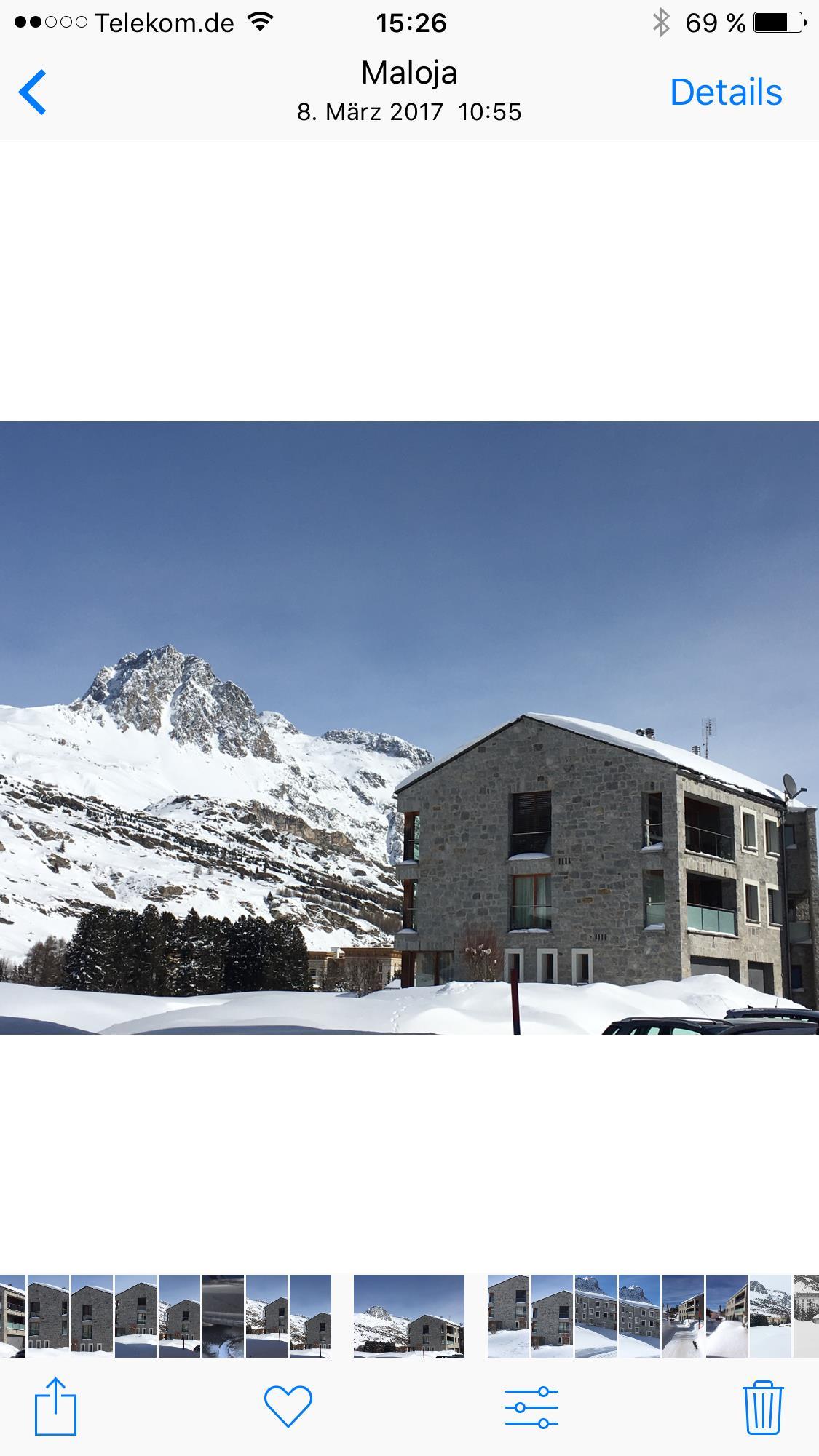 The solidly built stone house offers a balcony with breathtaking views and a stunning starry sky, as well as practical amenities such as a communal laundry room and a ski cellar. A garage parking space is available for your vehicle on request. Free parking is also available directly in front of the house.