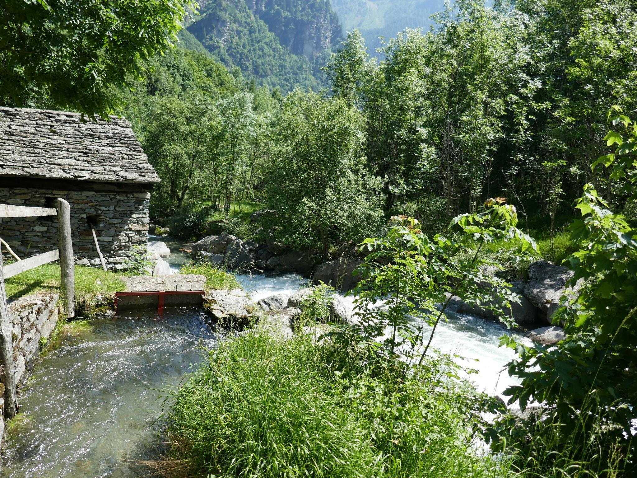 Dandrio 13 km from Malvaglia: Note: Power is supplied by a solar panel and generator. Stove and fridge are gas-operated. Wood boiler. Electrical appliances over 250W can not be operated. Note: Mountain road 13 km from Malvaglia real time 25 minutes. The use of the access road to the Malvaglia Valley has become subject to a fee as follows: CHF 7.00/day CHF 15.00/week CHF 30.00/month. The fee can be paid either in cash with CHF or by credit card. The toll machine is located in Caslou, right after you cross the bridge. Rustic, simple chalet "Rustico Fortuna", 1'200 m a.s.l.. In the resort Dandrio, in the district Valle di Blenio, in a central, sunny position, 100 m from the river, in the countryside. Narrow motor access (mountain road). 40 m footpath to the house. Parking at 40 m on the premises. Supermarket 13 km, restaurant 30 m, bus stop "Malvaglia Chiesa bus 131-140" 13.2 km, railway station "Biasca FFS - SBB" 19 km. Walking paths from the house 10 m, cable car 6 km. Nearby attractions: Castelli di Bellinzona (UNESCO), Mercati di Bellinzona, sabato, Museo della Valle di Blenio, Negrentino, Archivio Doneta, Locarno, Ascona, Lugano. Well-known lakes can easily be reached: Lago di Luzzone, Lago Retico, Lago di Lugano, Lago Maggiore. Hiking paths: Val Malvaglia, Valle di Blenio, Campo Blenio, Greina, Lucomagno. Please note: car recommended. Suitable for families, baby equipment on request (extra).