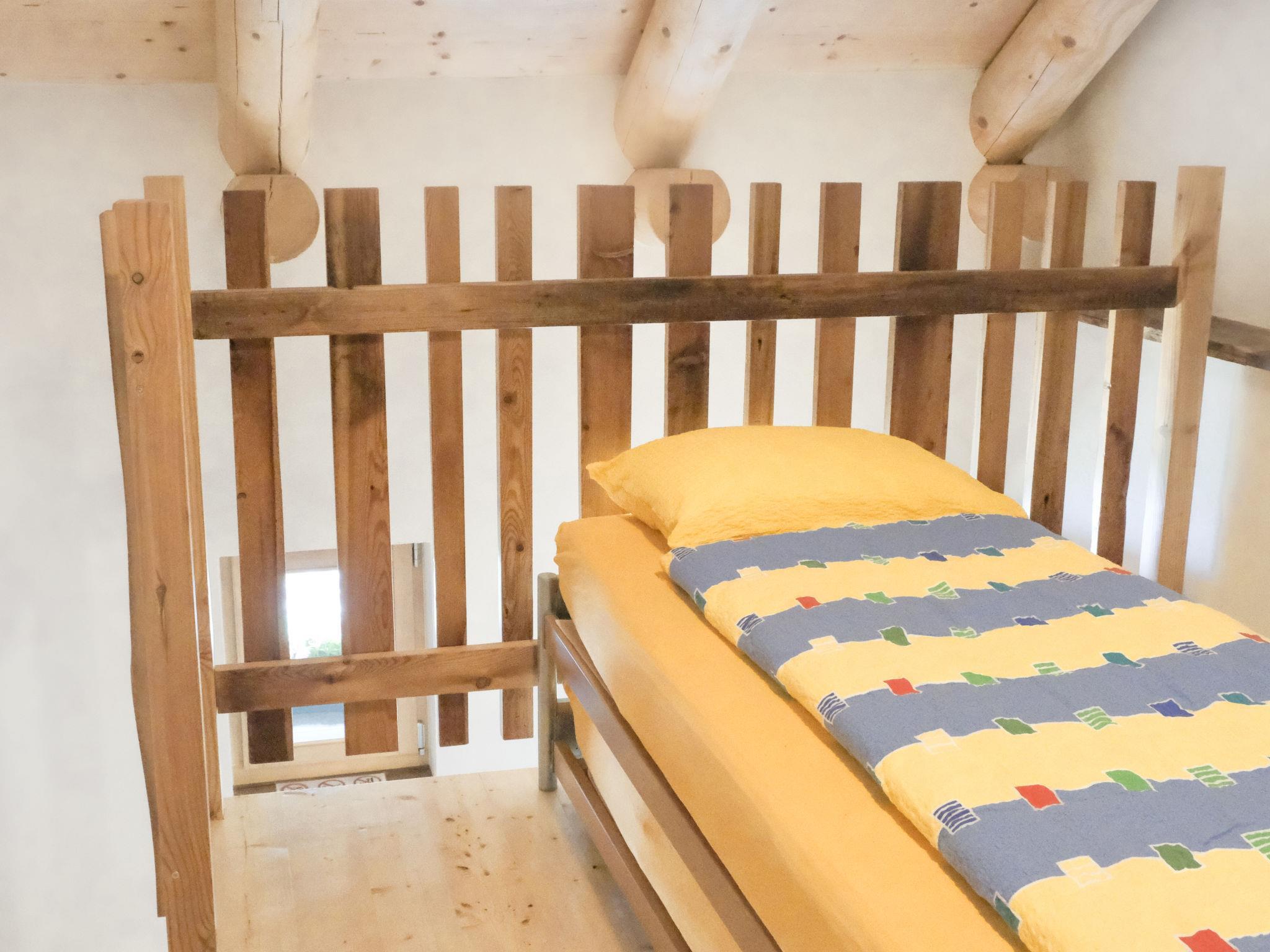 "Rustico La Dimora", 2-room house 30 m2 on 2 levels, south-east facing position. Object suitable for 2 adults + 2 children. Partly with sloping ceilings, fully renovated in 2022, practical and wooden furniture furnishings: open kitchen (Gas stove, 4 gas rings) with dining table, radio and wood-burning stove. Shower/WC. Wood heating. Solar power. Upper floor: open gallery with 1 double bed (2 x 80 cm, length 200 cm), 1 pull-out bed (2 pers. 2 x 80 cm, length 200 cm). Wooden floors. Terrace furniture, deck chairs (2). Beautiful view of the mountains and the resort. Facilities: children's high chair, baby cot for up to 2 year olds (extra). Please note: non-smokers only. >>Additional information: The Rustico Dimora has a historic outbuilding that is also available for use. It is decorated with furniture and tools from previous generations and thus provides an insight into the life of the inhabitants of Dandrio in past centuries. Instead of an enclosed bedroom, some sleeping areas are located in an open-plan area (gallery, alcove, etc.). NL-00003749