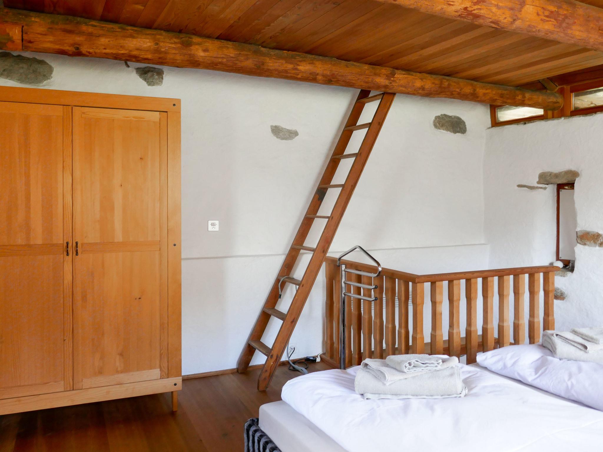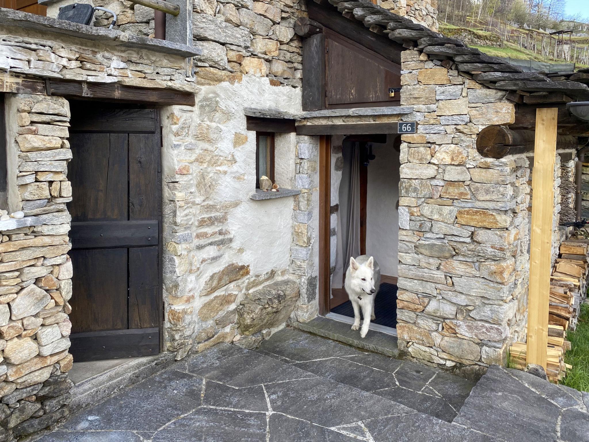 "Rustico Scateto 66", 2-room house 25 m2 on 2 levels. Object suitable for 2 adults. Comfortable and cosy furnishings: kitchen-/living room (oven, 4 ceramic glass hob hotplates, kettle, freezer, electric coffee machine, Capsules for coffee machine (Nespresso) extra) with dining table, wood-burning stove. Exit to the terrace. Shower/WC. Electric heating, wood heating. Upper floor: (steep stair), 1 double bedroom with 1 double bed (180 cm, length 200 cm). Exit to the terrace. 2 terraces partly covered. Deck chairs (2). Beautiful view of the mountains and the valley. Facilities: Internet (WiFi, extra). Please note: non-smoking house. Maximum 2 pets/ dogs allowed. NL-00003074