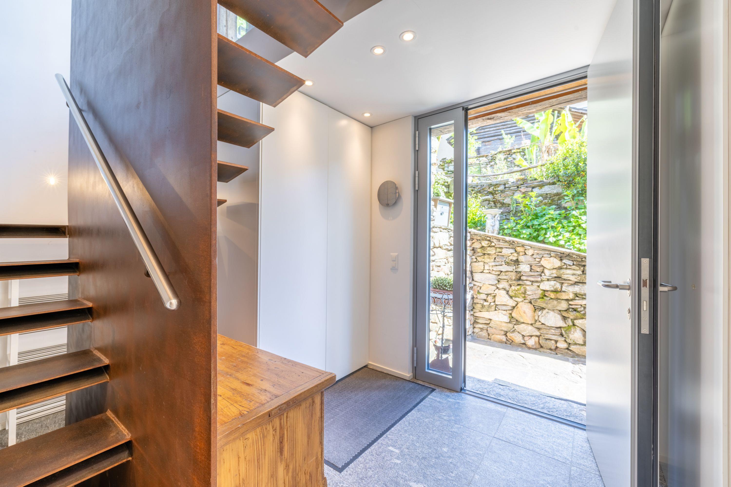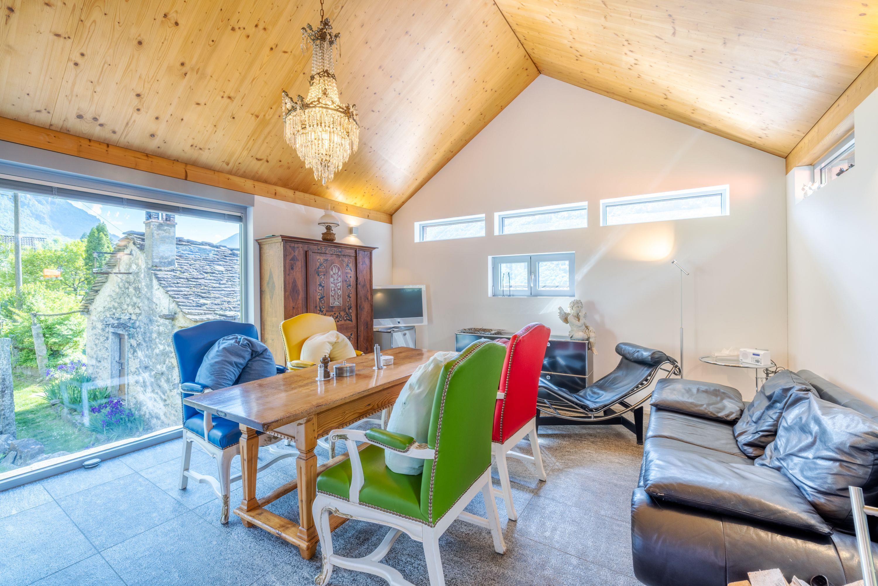 Modern living in the old walls where the people of Vals once lived. Discover the charming stone and timber house, a 500-year-old jewel that was lovingly and luxuriously restored in 2014. Located in the centre of a quiet residential area, above the village church of Malvaglia, this bijoux offers an exclusive retreat for couples with dogs or without dogs who are looking for a stylish and quiet retreat for weeks or longer periods. Just 2 minutes by car or a leisurely 10-minute walk from the nearest bus stop, it combines historic architecture with modern comfort and breathtaking views of the valley.
