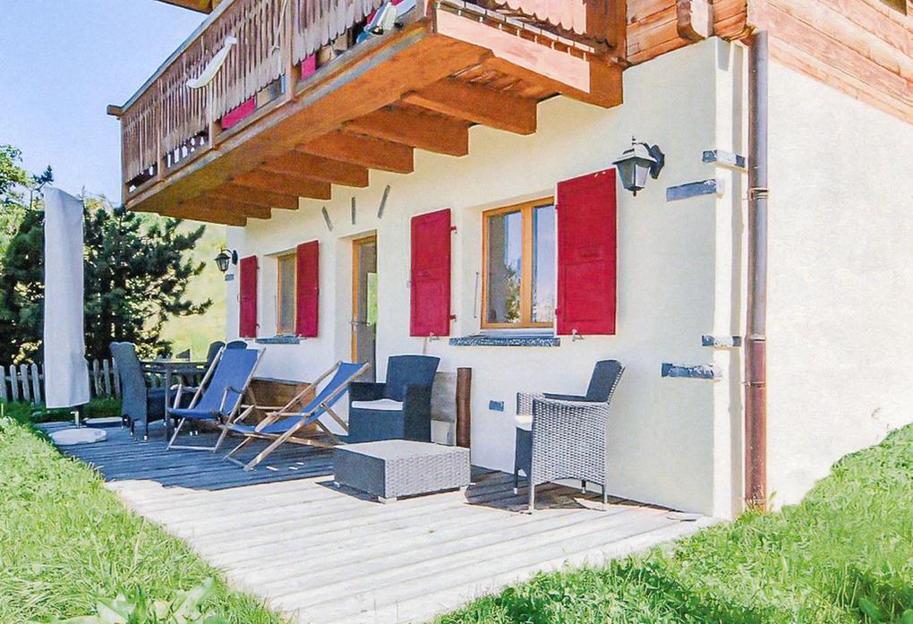 CH 379.20 Wohnung 2-4 Pers.: 3-Zimmerwohnung mit 55 qm Wohnfläche, Parterre. Wohnraum mit Kaminofen, TV, Sofaecke. Küchen-/Essraum mit Esstisch, moderner Küchenzeile (Backofen, Spülmaschine). Doppelzimmer mit franz. Bett. 2-Bettzimmer mit Etagenbett. Bad: Du, Wb, WC.