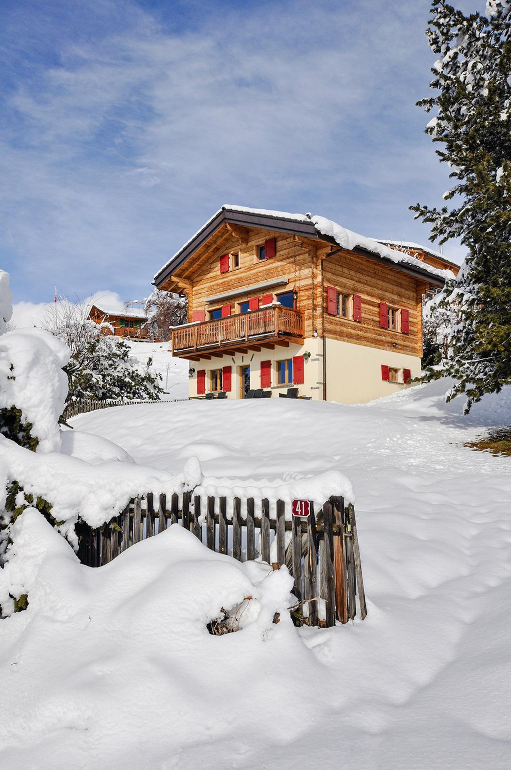 Haus: Schönes Walliser Chalet mit Kaminofen. Traditionelles 2-Familien-Chalet, 2023 aufwendig renoviert, die untere Wohnung wird vermietet. Gemütliche Chalet-Atmosphäre, moderne Komforteinrichtung. Internetzugang über W-Lan. Heizung über Pellet-Kaminofen, E-Radiatoren. Warmwasser über 150 l E-Boiler. Gartenhaus für Ski. 1 Pkw-Stellplatz am Haus.