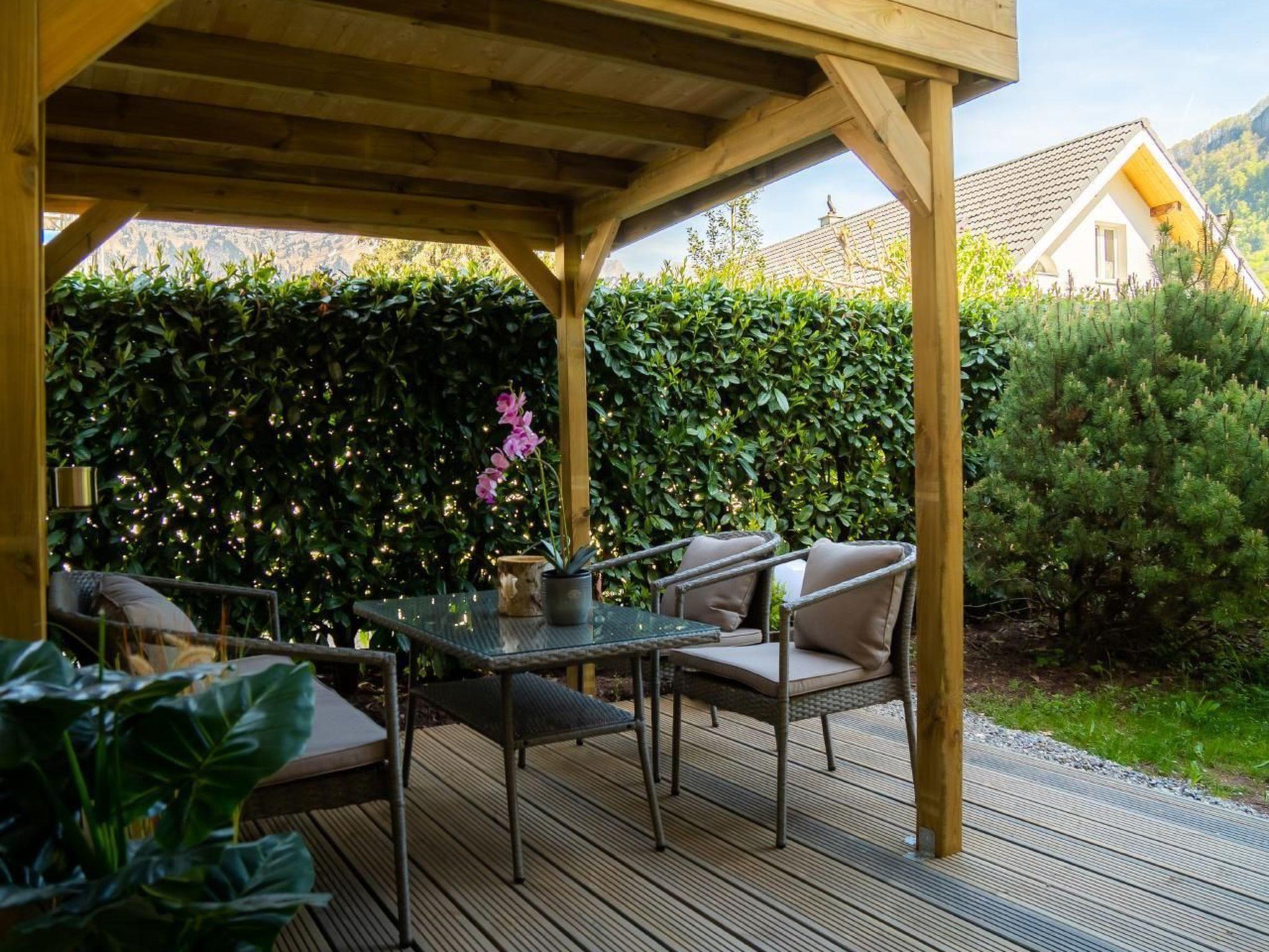 Adjacent to the garden, the smaller room offers direct access to a spacious picnic area, perfect for enjoying meals amid nature's embrace. Additionally, a Pavilion awaits in front of the studio, furnished with a cozy sofa, a quaint table, and two inviting chairs, offering picturesque views of the Flumserberg.