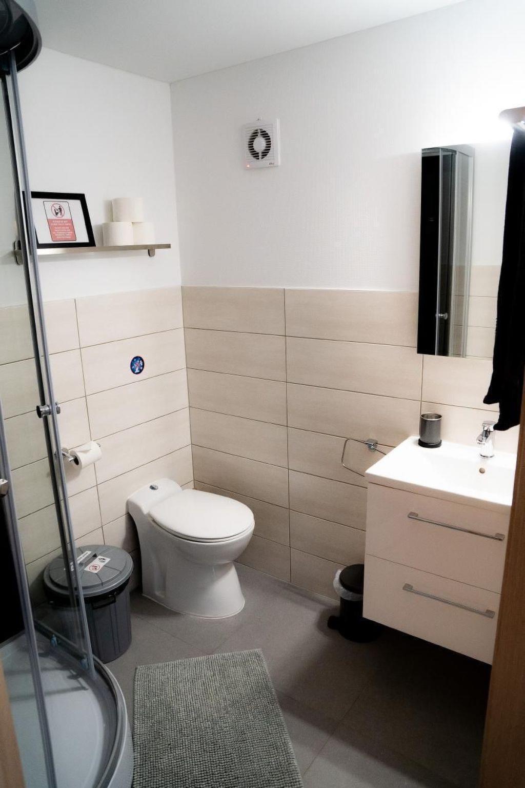 Inside, you'll find two separate rooms adorned with comfortable box-spring beds, accommodating a total of four guests (2 adults and 2 children). The larger room is thoughtfully equipped with an open kitchenette and a compact bathroom featuring a shower, sink, and toilet (The toilet is a sanibroyeur here no toilet paper or toilet articles are allowed to be flushed away)