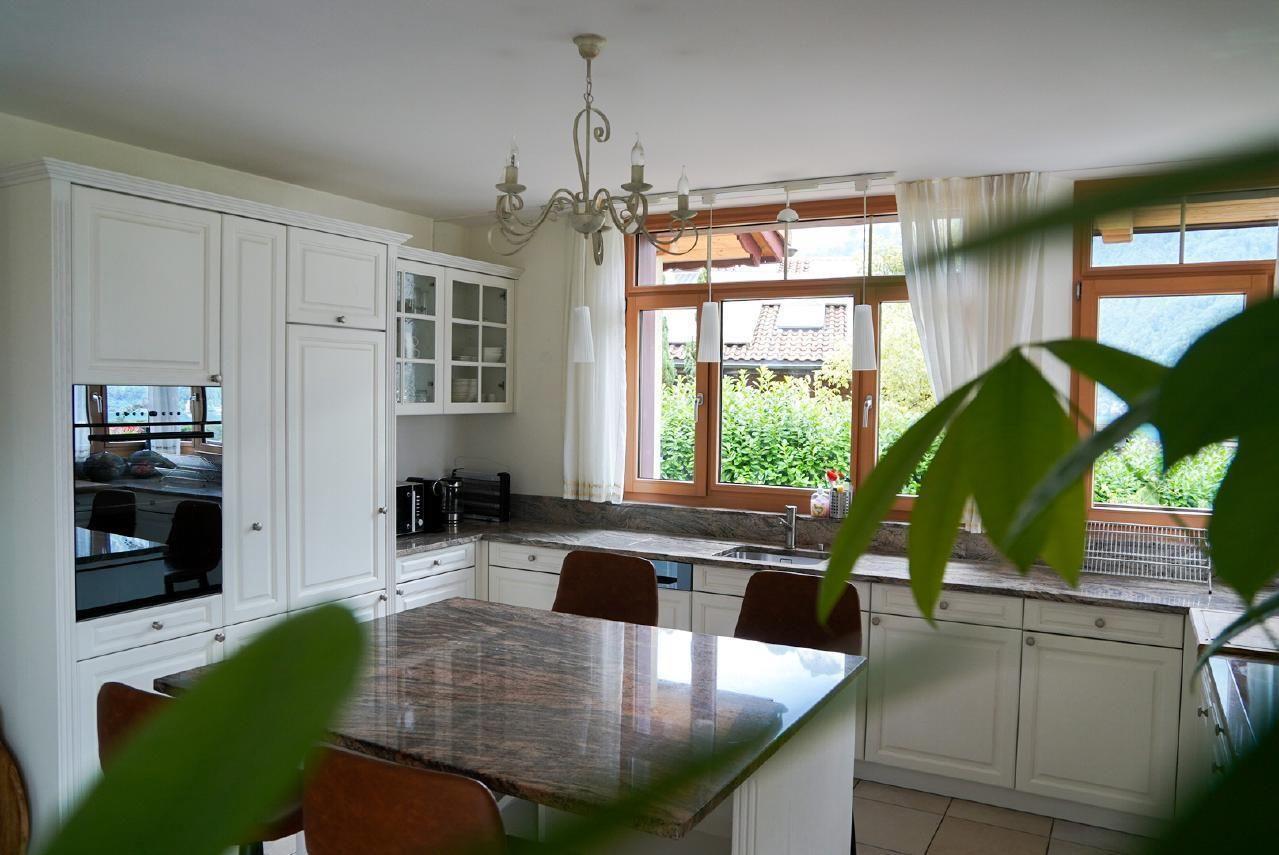 Nestled in the heart of the property, the penthouse apartment offers a spacious kitchen designed for culinary endeavors catering to large gatherings. Its expansive windows unveil breathtaking views of the majestic Churfirsten range. Adjacent to the kitchen, a cozy bar area awaits, perfect for intimate dining experiences.