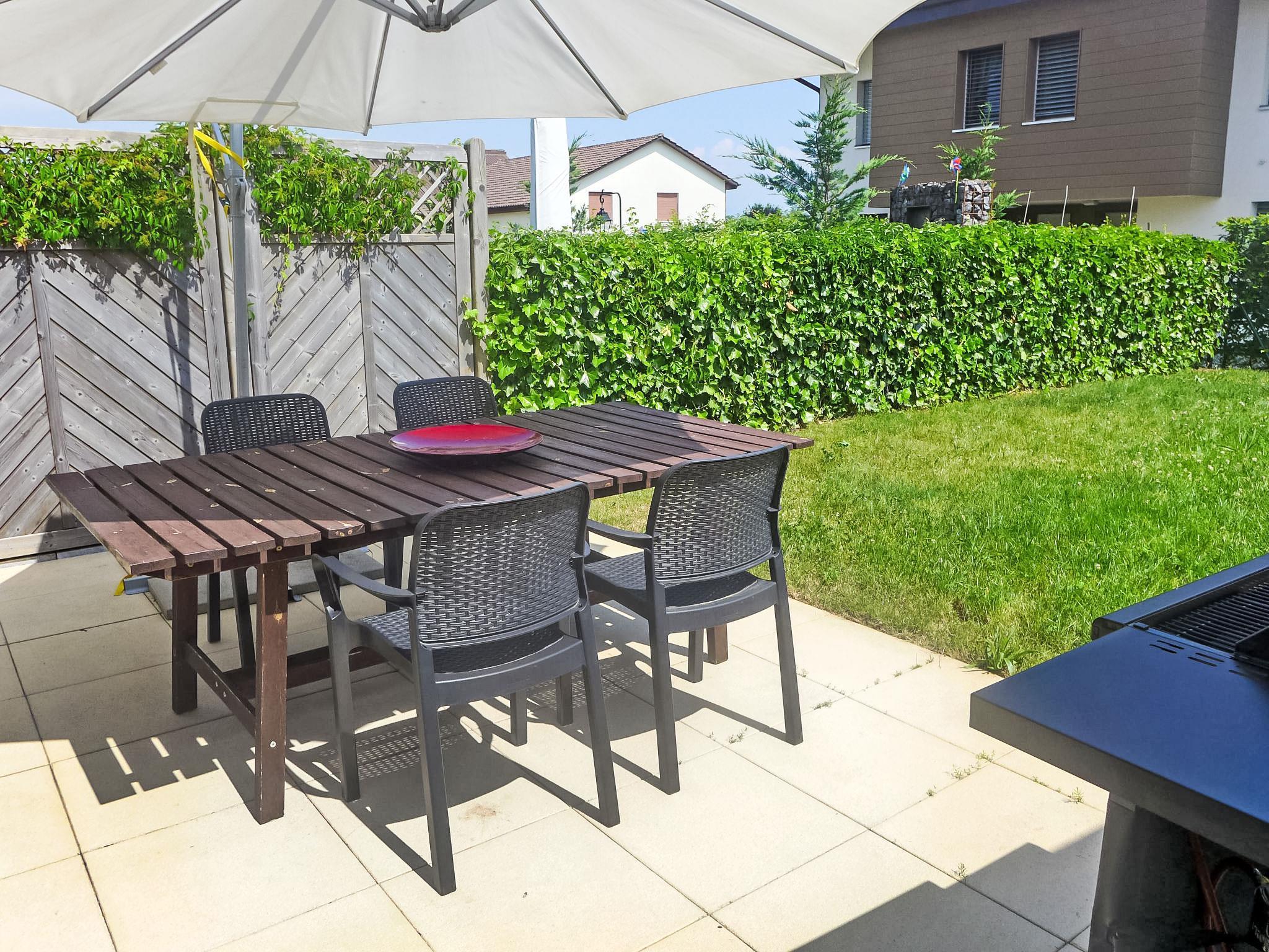 Lussy-sur-Morges 5 km from Morges: Terraced house "Route de Coinsin". In the resort, in the residential district, 4 km from the lake, in the countryside. In the house: central heating system. Communal covered parking. Shop 5 km, grocery 1.6 km, restaurant 100 m, bus stop 500 m, railway station "Morges" 5 km, outdoor swimming pool 4 km, swimming bay 4 m. Tennis 4 m, walking paths from the house 1 m. Nearby attractions: Morges 5 km, Musée Olympique 17 km, Montreux 47 km, Genf / Geneva 52 km. Well-known ski regions can easily be reached: La Dôle (Saint-Cergue) 43 km, Leysin 79 km, Diablerets 83 km. Well-known lakes can easily be reached: Lac Léman 4 km. Hiking paths: Jura 30 km.