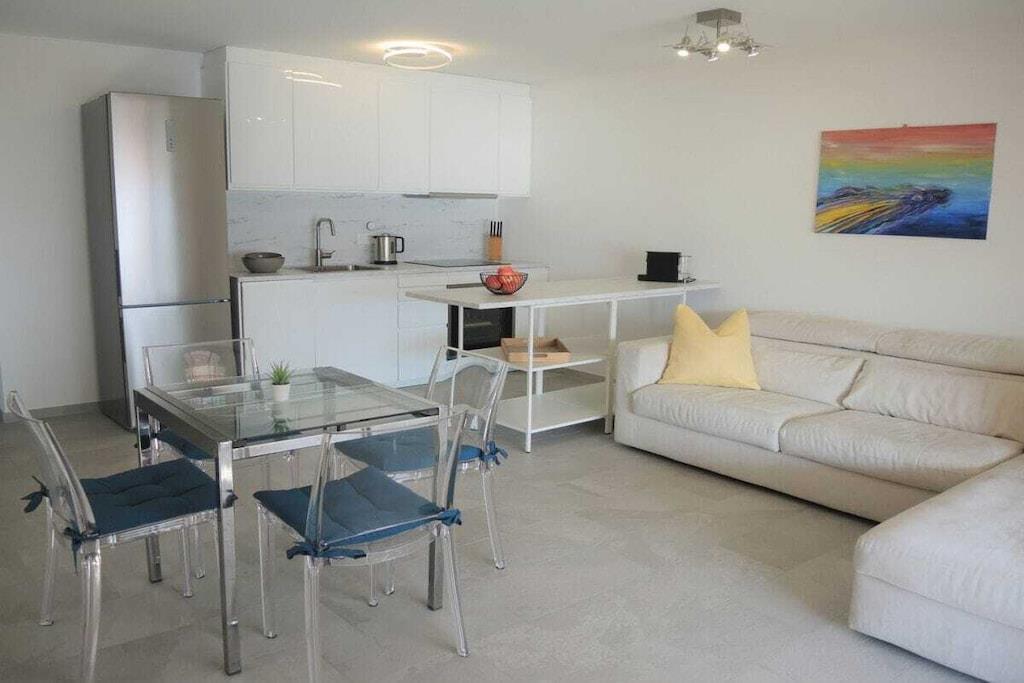• 2.5 rooms, 70 m², 2nd floor • Sleeps 2 • Central, sunny location, close to the lake promenade • View of the lake and surrounding mountains • Modern interior design • Terrace with dining table and lounge chair • Living-dining area with dining table and 4 chairs • Comfortable sofa, large flat-screen TV • Wi-Fi • New, modern open-plan kitchen with sideboard • Ceramic hob, oven • Freestanding refrigerator with freezer • Dishwasher • Nespresso coffee machine (guests must bring their own capsules) • Kettle, toaster • 1 double bedroom (180 x 200 cm), wardrobe, chair • Bathroom with shower/tub combination, sink, mirrored cabinet, toilet • Parking space in the underground garage • Pets not allowed • Non-smoking apartment, please smoke on the terrace