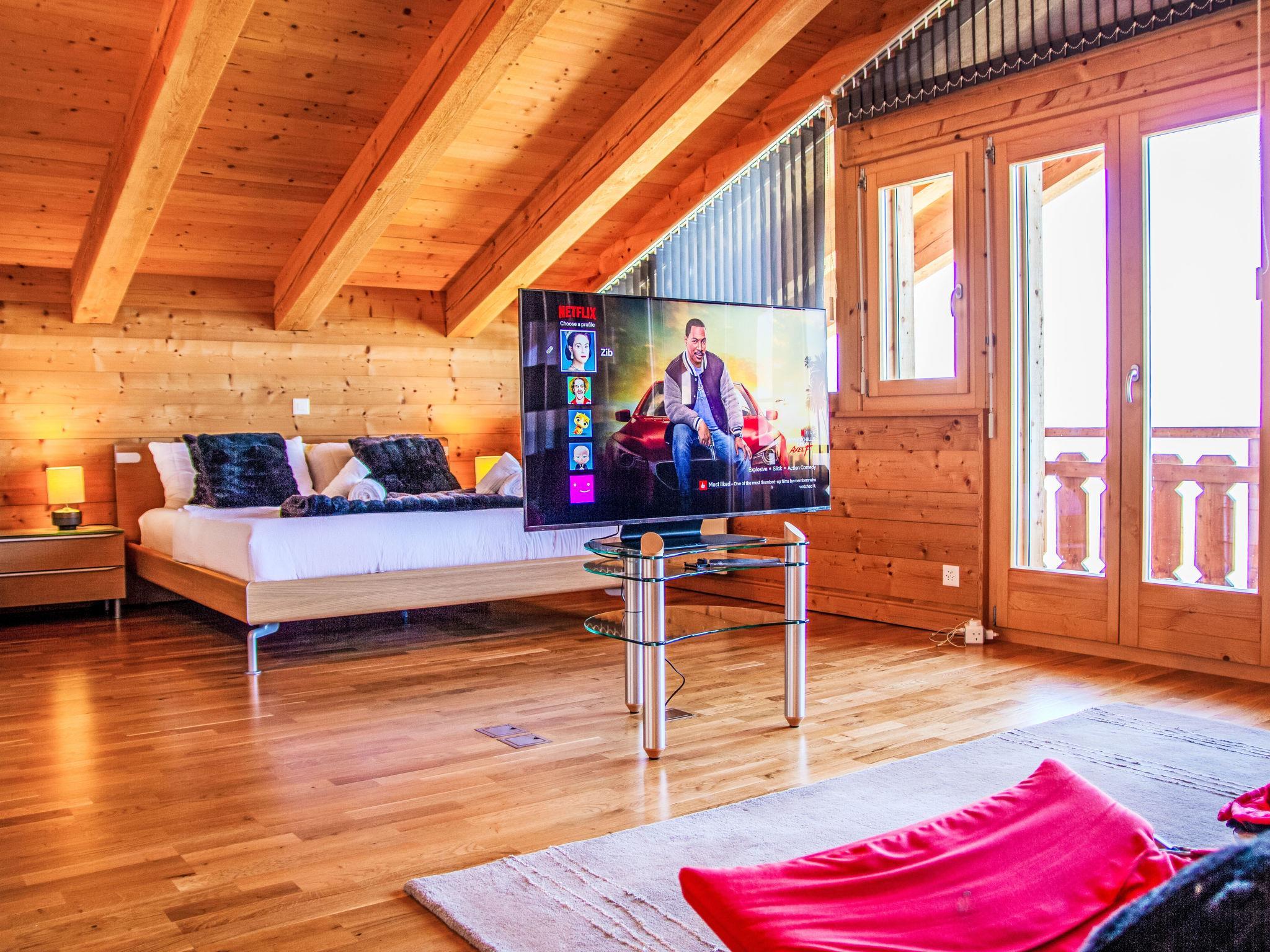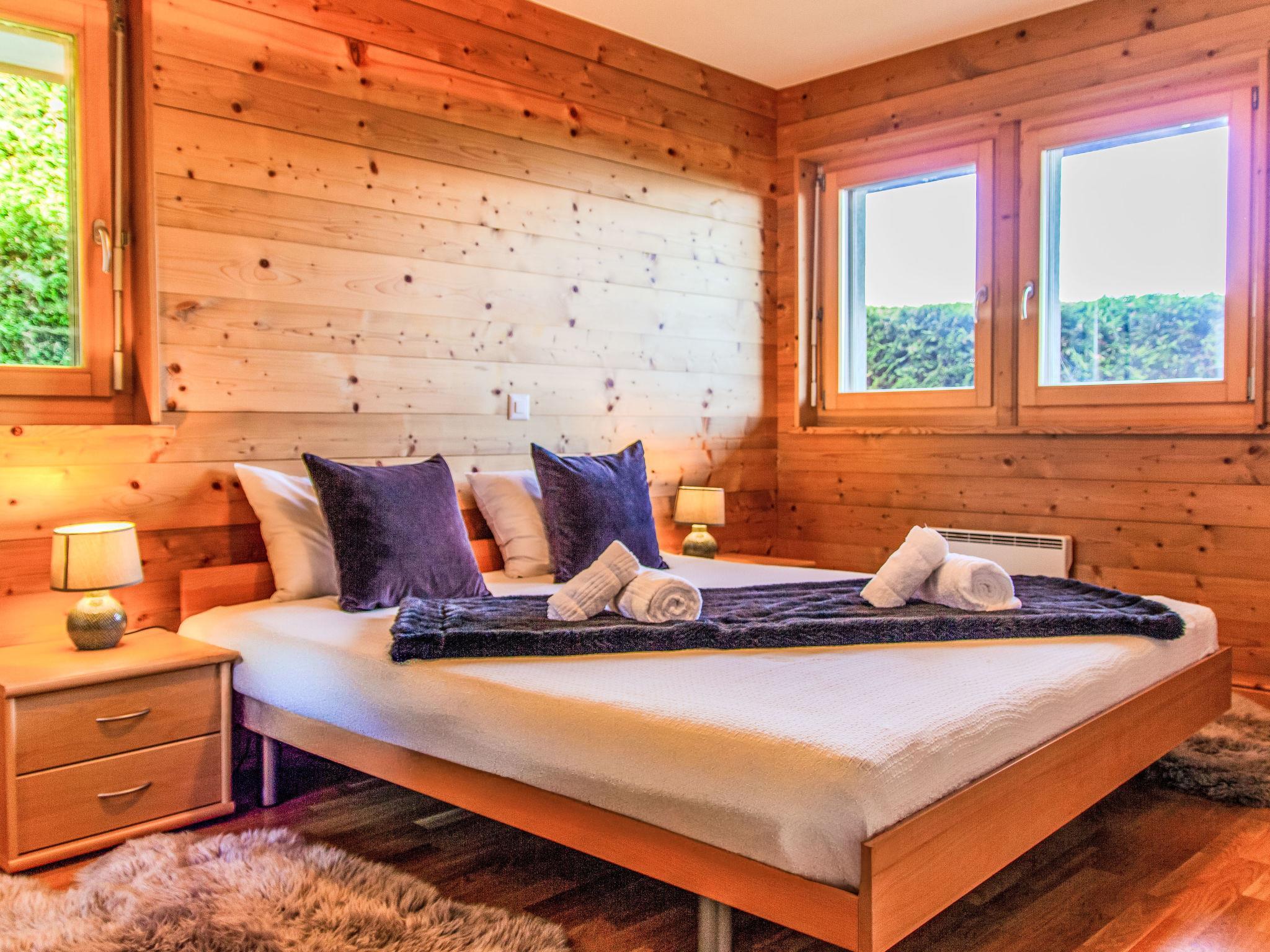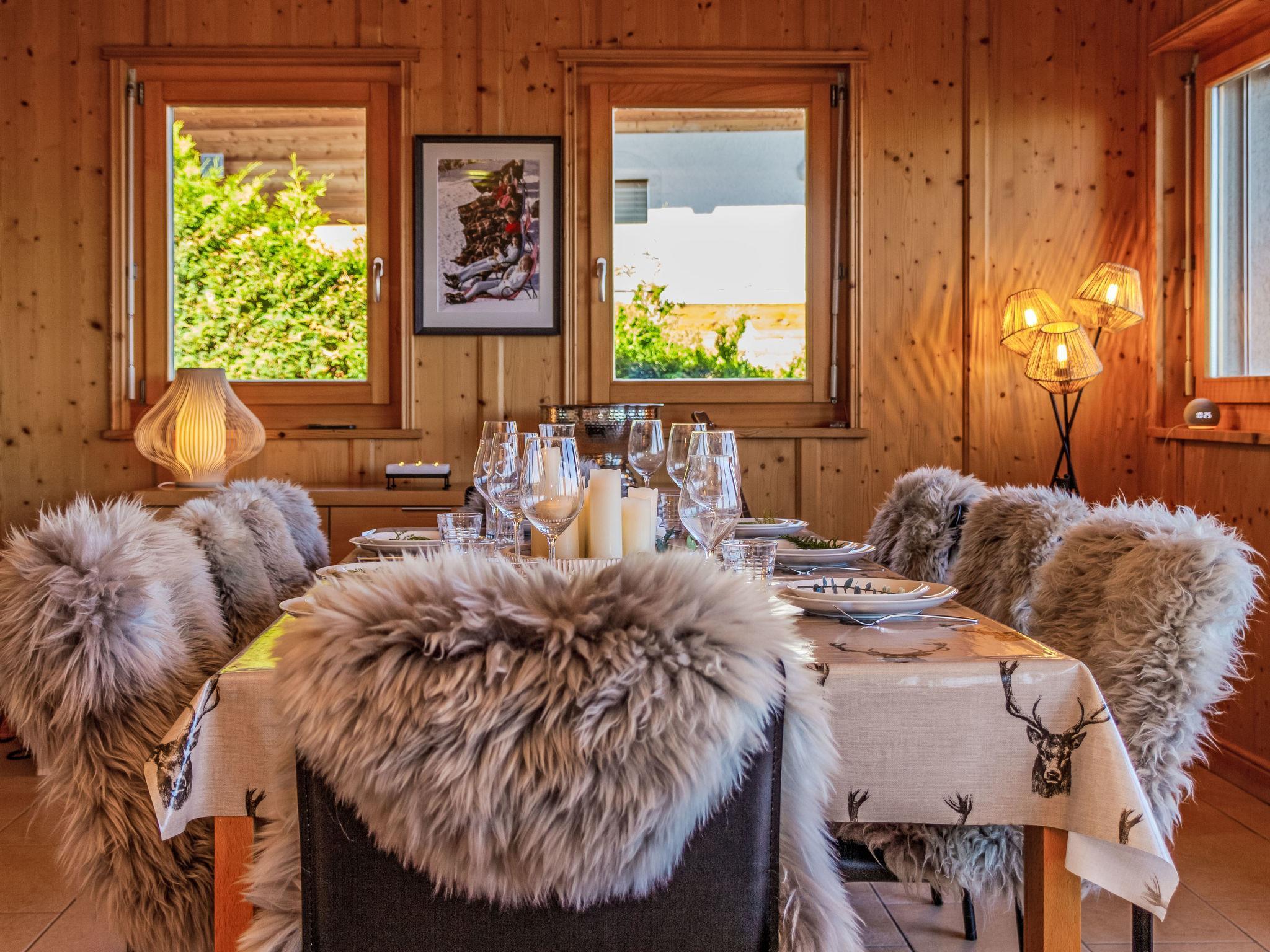 "Chalet Aurore", 5-room chalet 190 m2 on 3 levels, north-west facing position. Spacious, comfortable and tasteful furnishings: entrance hall. Large living/dining room with open-hearth fireplace and TV. Exit to the balcony, north facing position. Open kitchen (oven, dishwasher, 4 ceramic glass hob hotplates, toaster, kettle, microwave, freezer, electric coffee machine, Capsules for coffee machine (Nespresso) extra, raclette grill, fondue Set (cheese)). Exit to the terrace. Sep. WC. Electric heating. On the lower ground floor: 2 small rooms, each room with 2 beds (90 cm, length 200 cm). 1 room with 1 french bed (180 cm, length 200 cm), shower/WC and double hand-basin. Bath/WC, shower. Upper floor: 1 large room with 1 french bed (180 cm, length 200 cm), bath/shower/WC, double hand-basin, with corner bath and TV. Exit to the balcony, north facing position. Balcony, north facing position, terrace, east facing position. Terrace furniture, balcony furniture, barbecue, deck chairs (4). Marvellous view of the mountains. Facilities: washing machine, dryer, children's high chair, baby cot. Internet (WiFi, free). Garage (2 cars). Please note: non-smokers only.
