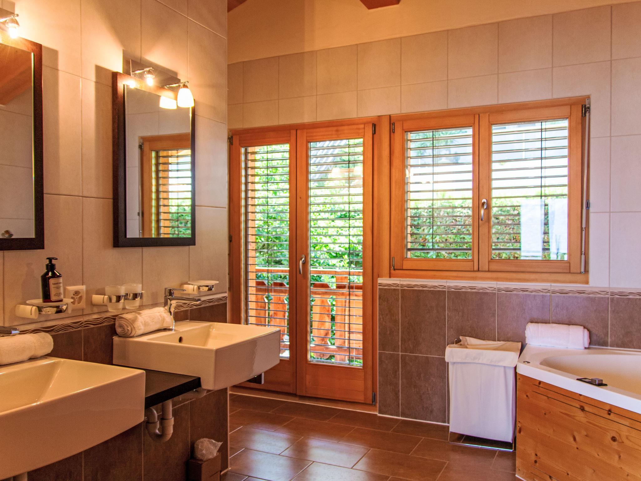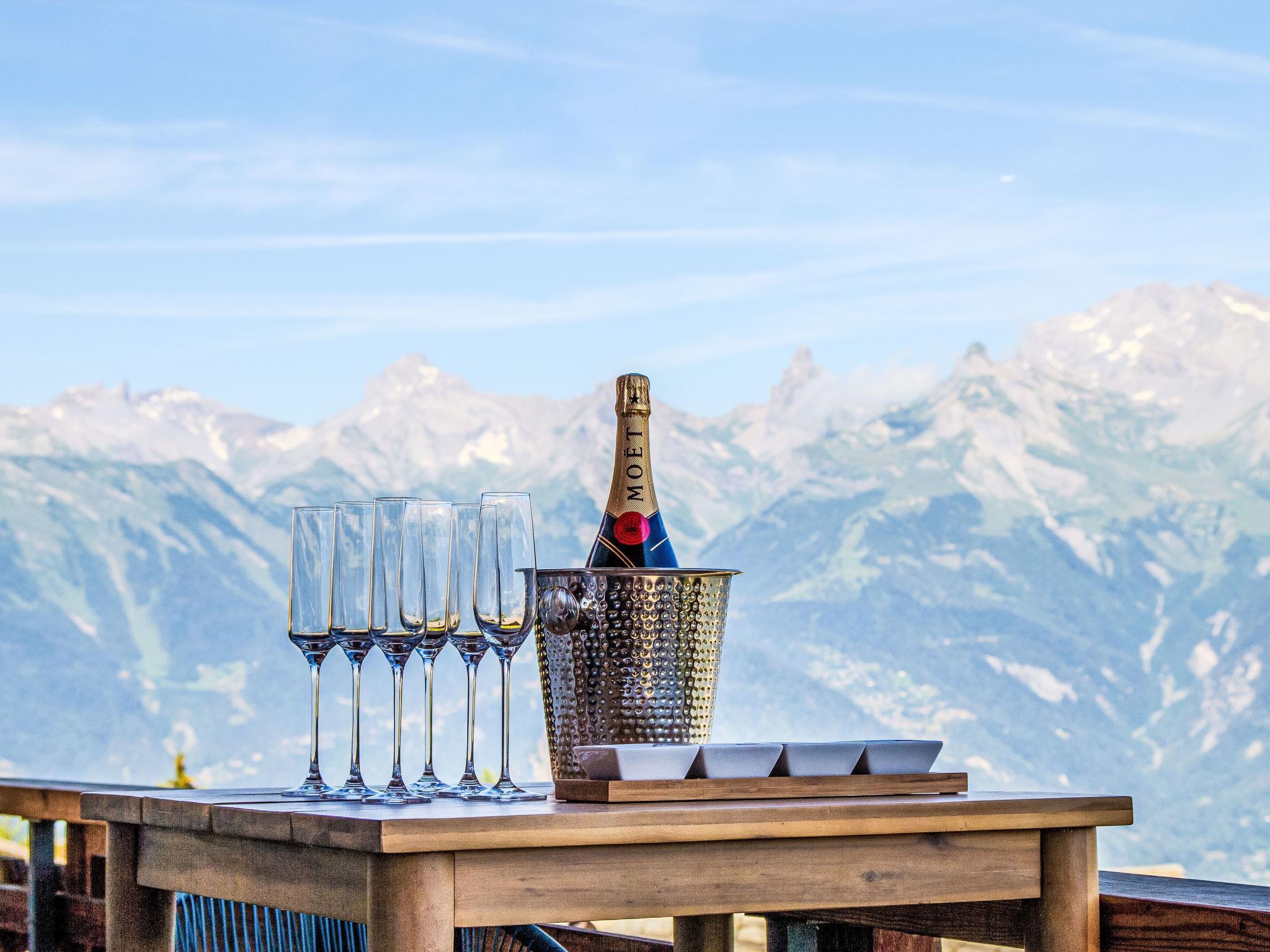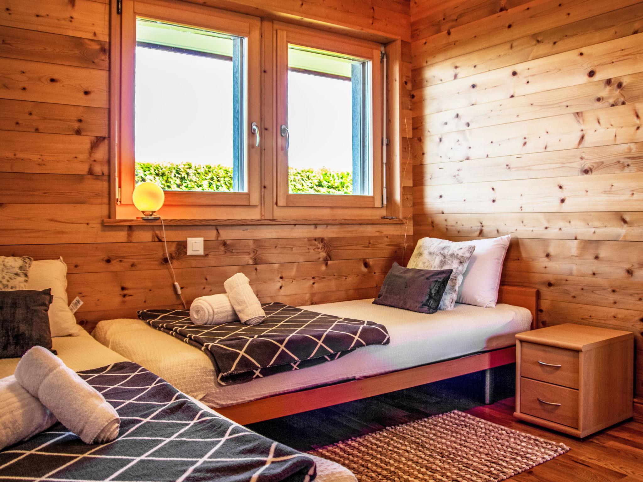 "Chalet Aurore", 5-room chalet 190 m2 on 3 levels, north-west facing position. Spacious, comfortable and tasteful furnishings: entrance hall. Large living/dining room with open-hearth fireplace and TV. Exit to the balcony, north facing position. Open kitchen (oven, dishwasher, 4 ceramic glass hob hotplates, toaster, kettle, microwave, freezer, electric coffee machine, Capsules for coffee machine (Nespresso) extra, raclette grill, fondue Set (cheese)). Exit to the terrace. Sep. WC. Electric heating. On the lower ground floor: 2 small rooms, each room with 2 beds (90 cm, length 200 cm). 1 room with 1 french bed (180 cm, length 200 cm), shower/WC and double hand-basin. Bath/WC, shower. Upper floor: 1 large room with 1 french bed (180 cm, length 200 cm), bath/shower/WC, double hand-basin, with corner bath and TV. Exit to the balcony, north facing position. Balcony, north facing position, terrace, east facing position. Terrace furniture, balcony furniture, barbecue, deck chairs (4). Marvellous view of the mountains. Facilities: washing machine, dryer, children's high chair, baby cot. Internet (WiFi, free). Garage (2 cars). Please note: non-smokers only.