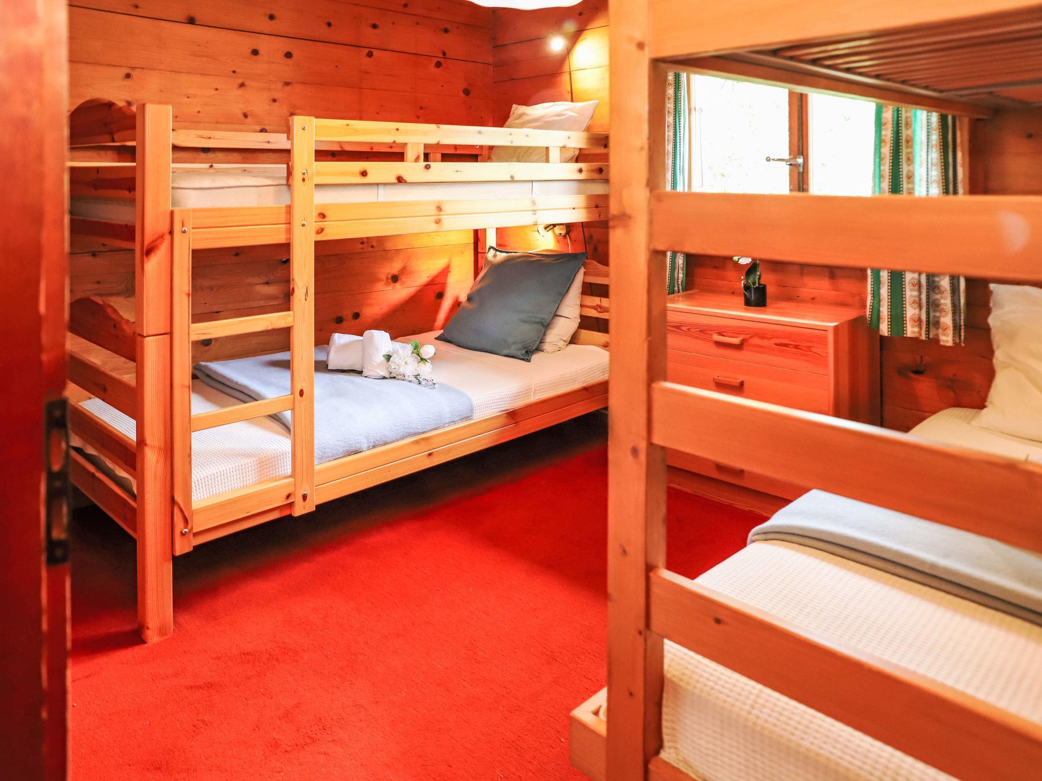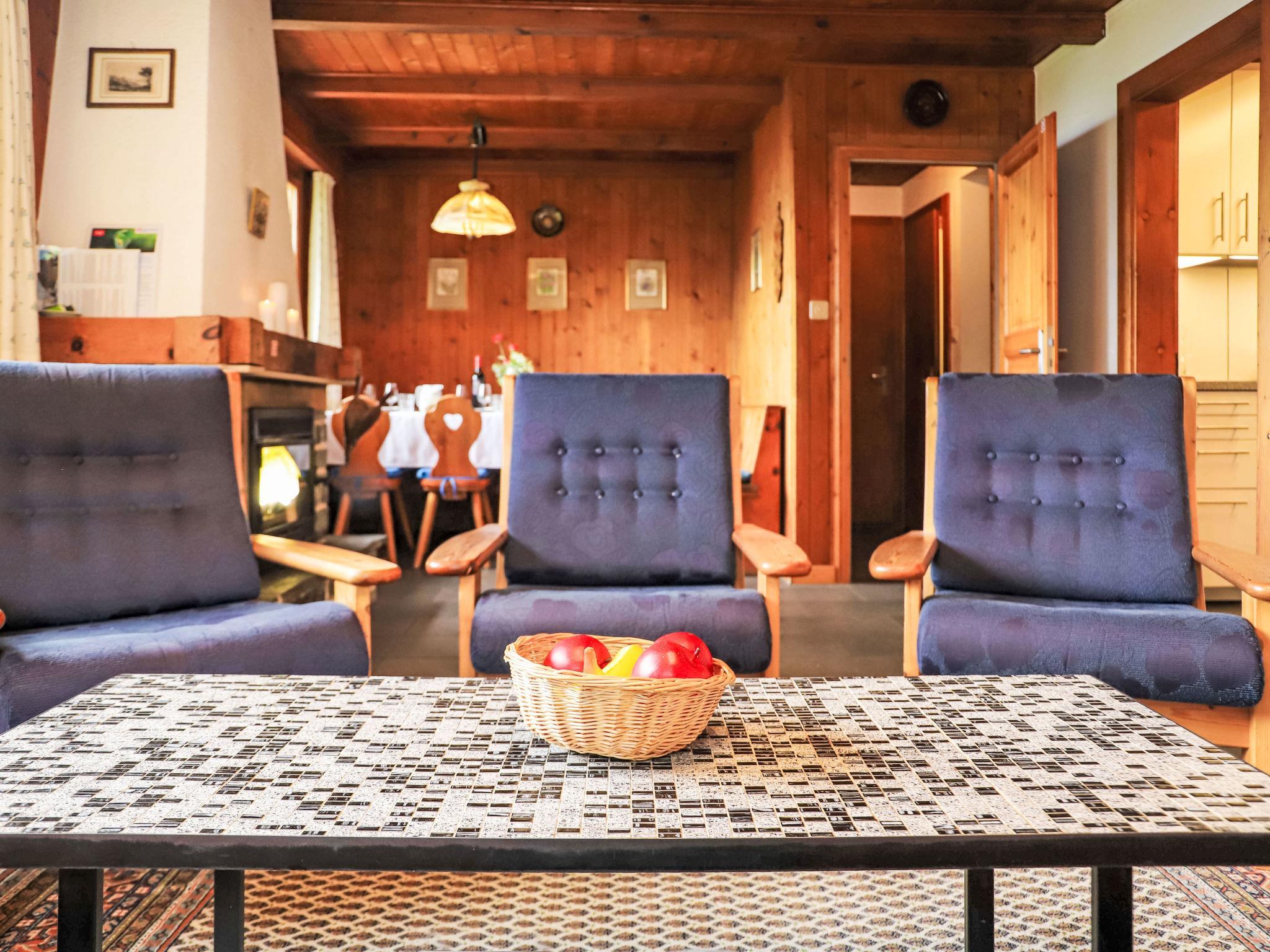 "Mungg", 4-room chalet 84 m2 on 2 levels. Simple and rustic furnishings: living/dining room with open-hearth fireplace, separate WC and satellite TV. Kitchen (oven, dishwasher, 4 ceramic glass hob hotplates, toaster, kettle, electric coffee machine, fondue Set (cheese)). Upper floor: 2 rooms, each room with 2 beds (90 cm, length 190 cm). 1 room with 1 x 2 bunk beds (90 cm, length 200 cm). Bath/WC. Electric heating. Balcony, north facing position, terrace 20 m2, north facing position and west facing position, lawn 45 m2. Terrace furniture, barbecue, deck chairs (2). View of the valley. Facilities: washing machine, dryer, children's high chair, baby cot. Internet (WiFi, free). Parking (2 cars) at 200 m. Please note: non-smokers only. Maximum 1 pet/ dog allowed. TV only DE.