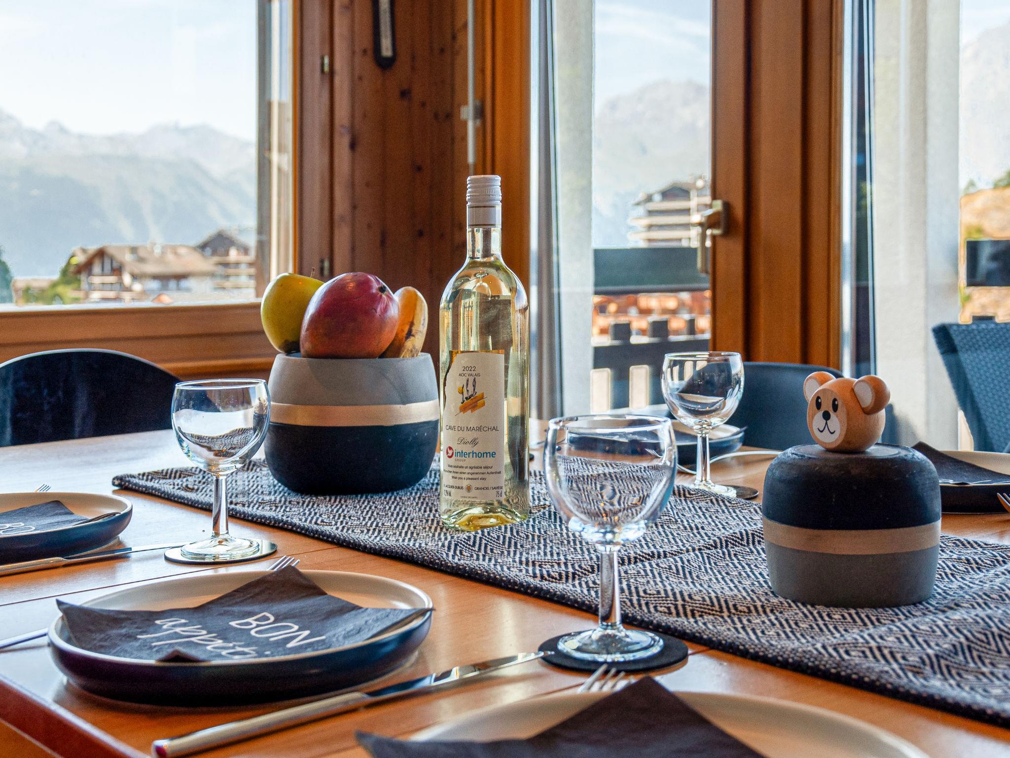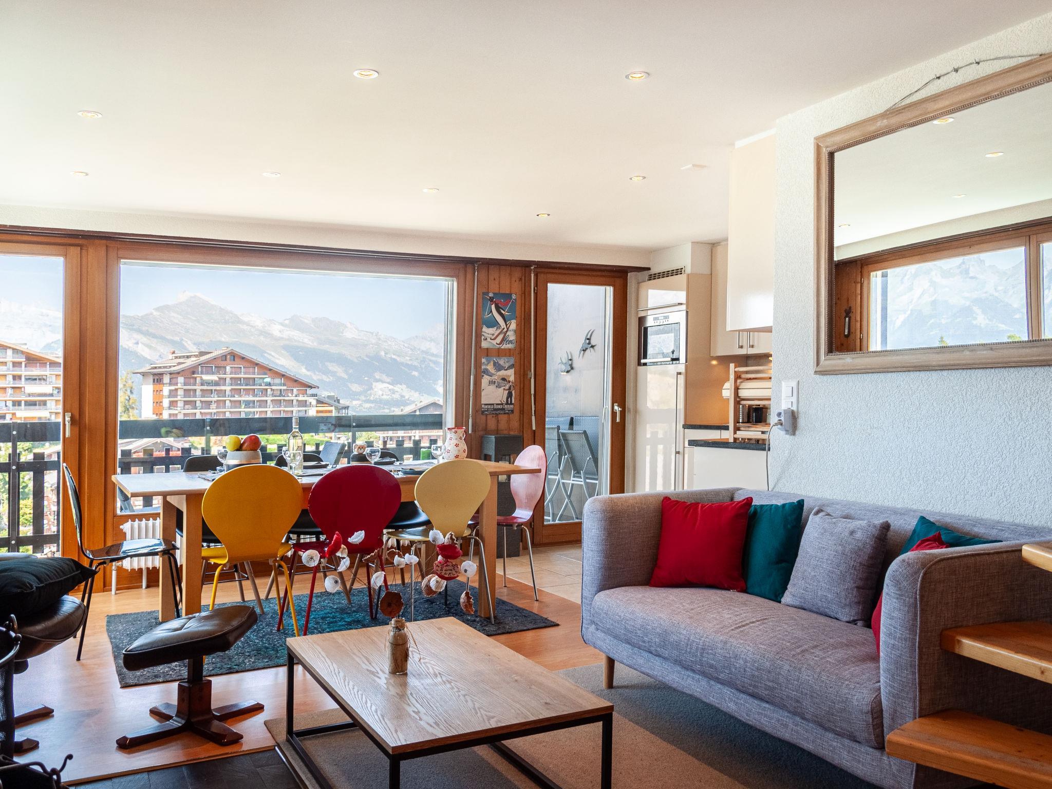 "Prameiraz 10", 4-room penthouse 85 m2 on 2 levels on 3rd floor, north-west facing position. Bright, partly with sloping ceilings, partly renovated in 2012, beautiful and tasteful furnishings: small living/dining room, north-west facing position with open-hearth fireplace and cable TV. Exit to the balcony, west facing position. 1 room with 1 french bed (180 cm, length 200 cm). Open kitchen (oven, dishwasher, 4 ceramic glass hob hotplates, microwave, electric coffee machine, Capsules for coffee machine (nespresso) extra, raclette grill, fondue Set (cheese)). Exit to the balcony, north facing position. Bath/WC. Upper floor: 1 room with 1 french bed (180 cm, length 200 cm), bath/WC. Exit to the balcony, north facing position. 1 room with 1 french bed (160 cm, length 200 cm). Shower/WC. 2 balconies, north facing position balcony, west facing position. Very beautiful view of the mountains and the resort. Facilities: baby cot. Internet (WiFi, free). Parking space n valaisia 9 (roofed) at 100 m. Please note: not suitable for small children. Non-smokers only.