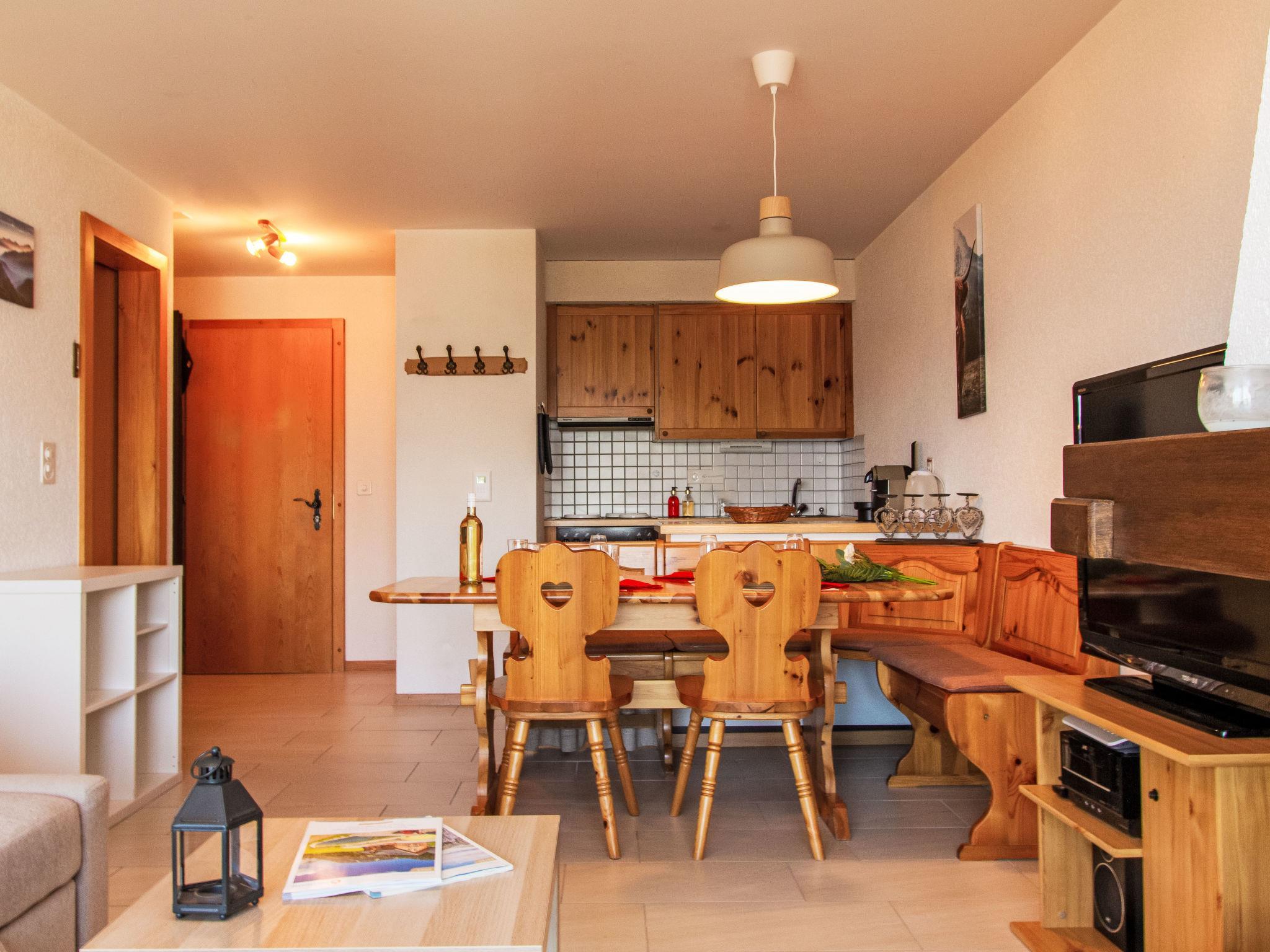 "Hauts de Nendaz A F3", 2-room apartment 50 m2 on 3rd floor, north-west facing position. Object suitable for 2 adults + 2 children. Bright, comfortable and beautiful furnishings: entrance hall with 1 x 2 bunk beds (90 cm, length 190 cm). Living/dining room with open-hearth fireplace and cable TV. Exit to the balcony, north-west facing position. 1 room with 1 double bed (80 cm, length 200 cm). Exit to the balcony. Open kitchen (4 hot plates, oven, dishwasher, toaster, kettle, electric coffee machine, Capsules for coffee machine (nespresso) extra, raclette grill, fondue Set (cheese)). Bath/WC. Balcony, north-west facing position. Balcony furniture. Very beautiful view of the mountains and the ski run. Facilities: hair dryer. Internet (WiFi, free). Parking space n F3. Please note: non-smokers only. Instead of an enclosed bedroom, some sleeping areas are located in an open-plan area (gallery, alcove, etc.).