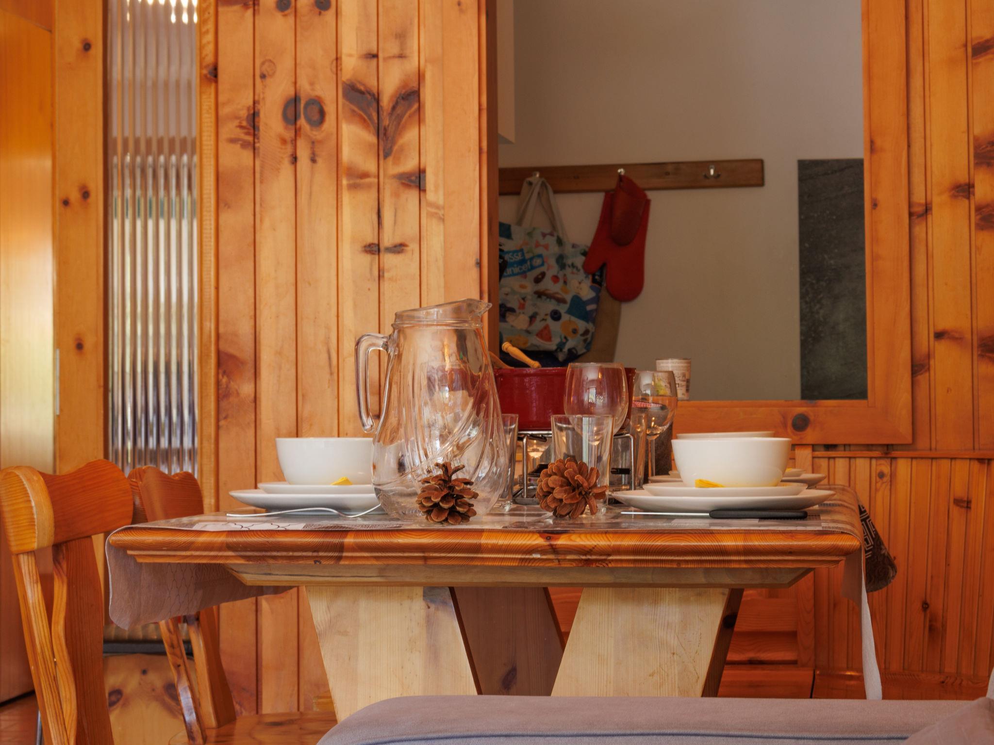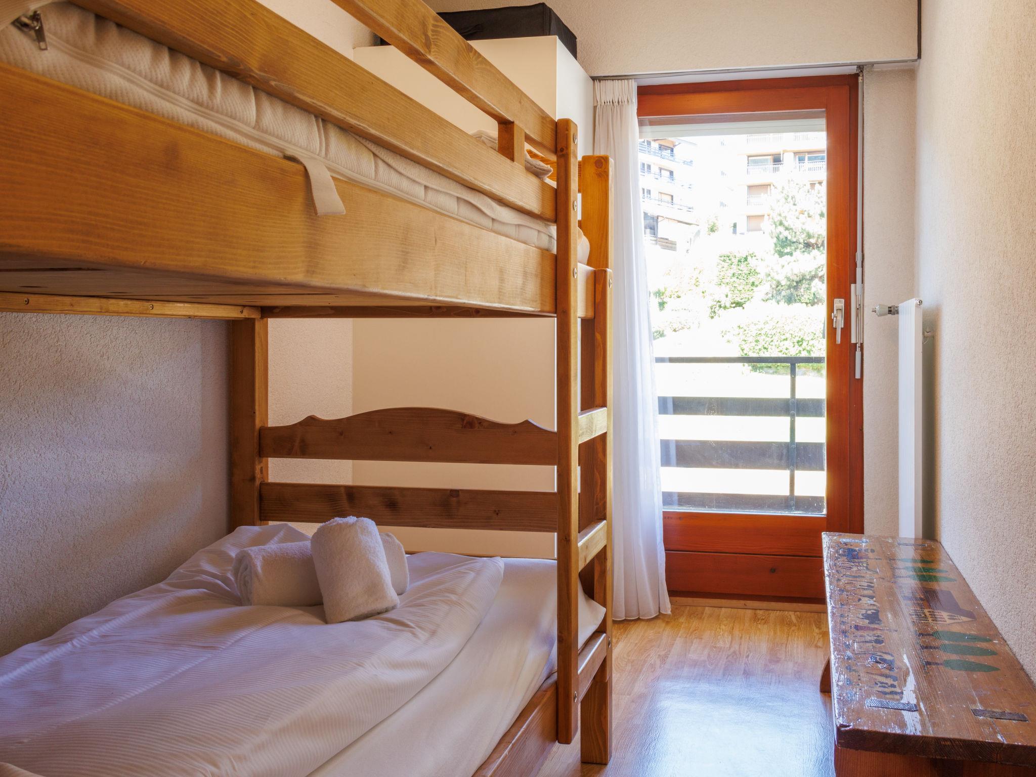 "Les Platanes E3", 3-room apartment 64 m2 on 3rd floor. Practical furnishings: living/sleeping room with 1 double sofabed (1 x 140 cm, length 180 cm), open-hearth fireplace (only for decoration), cable TV and DVD. Exit to the balcony, south facing position. 1 room with 1 french bed (180 cm, length 200 cm). Exit to the balcony, north facing position. 1 room with 1 x 2 bunk beds (90 cm, length 190 cm). Exit to the balcony, north facing position. Kitchen (oven, dishwasher, 4 ceramic glass hob hotplates, toaster, kettle, microwave, electric coffee machine, Capsules for coffee machine (nespresso) extra, raclette grill, fondue Set (cheese)). Bath/WC, sep. WC. 2 balconies. Balcony furniture. Beautiful view of the resort. Facilities: Internet (WiFi, free). Parking space n 29 Les Sorbiers. Please note: non-smokers only. Maximum 1 pet/ dog allowed.