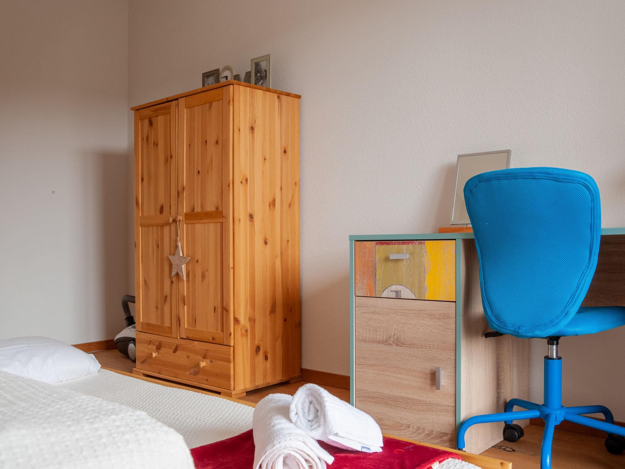 "Ferme de Sandra E0", 3-room apartment 65 m2, on the ground floor. Object suitable for 2 adults + 2 children. Comfortable and beautiful furnishings: living/dining room. Exit to the terrace, west facing position. 1 room with 1 french bed (160 cm, length 200 cm). Exit to the terrace, north facing position. 1 room with 1 bed (90 cm, length 200 cm), 1 sleeping facility (90 cm, length 200 cm). Exit to the terrace, north facing position. Open kitchen (oven, dishwasher, 4 ceramic glass hob hotplates, toaster, kettle, microwave, electric coffee machine, Capsules for coffee machine (nespresso) extra, raclette grill, fondue Set (cheese)). Shower/WC. Large terrace 25 m2, west facing position, small terrace, north facing position. Terrace furniture, deck chairs (2). Beautiful view of the mountains. Facilities: baby cot, hair dryer. Internet (WiFi, free). Parking space n 18. Please note: non-smokers only. Maximum 1 pet/ dog allowed.