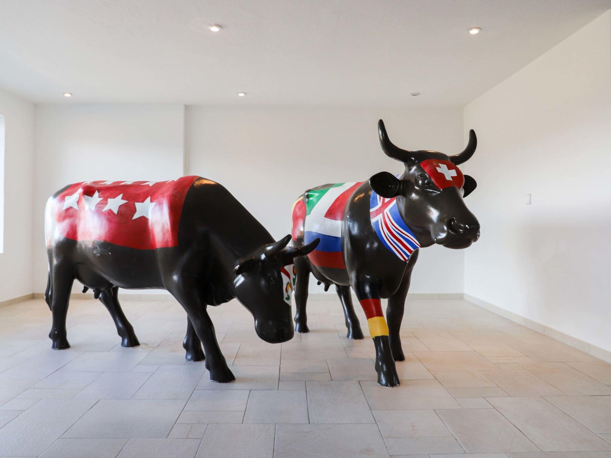 "Domaine des Reines C10", 5-room apartment 110 m2 on 5th floor. Spacious and bright, comfortable and tasteful furnishings: large living/dining room with panoramic window with open-hearth fireplace, cable TV and DVD. Exit to the balcony. 1 room with 1 french bed (160 cm, length 200 cm), shower/WC. Exit to the balcony, north facing position. 2 rooms, each room with 1 french bed (160 cm, length 200 cm). Exit to the balcony, south facing position. 1 room with 2 beds (90 cm, length 190 cm). Exit to the balcony, west facing position. Open kitchen (oven, dishwasher, 4 ceramic glass hob hotplates, toaster, kettle, microwave, electric coffee machine, Capsules for coffee machine (Nespresso) extra, raclette grill, fondue Set (cheese)). Bath/WC. Large balcony 53 m2, north facing position and, east facing position balcony, south facing position. Balcony furniture. Very beautiful view of the mountains and the valley. Facilities: hair dryer. Internet (WiFi, free). Parking (roofed, 1 car), height 210 cm, width 260 cm. Please note: non-smokers only.