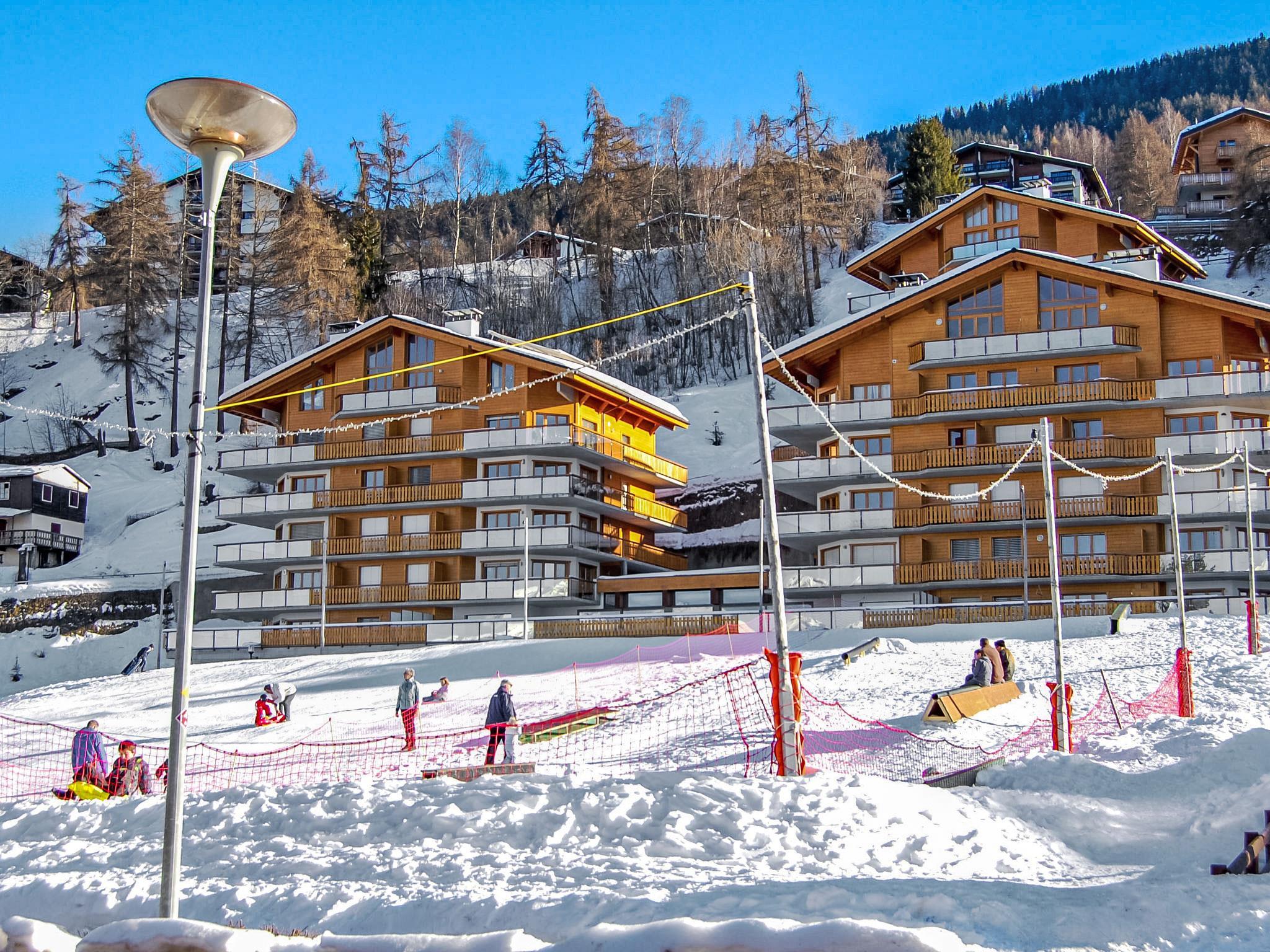 Residence "Domaine des Reines", built in 2008. In the resort. For shared use: indoor pool (8 x 15 m, depth 150 cm, seasonal availability: 15.Dec. - 01.Nov. pool opening hours: 08:00-22:00). Terrace. In the house: sauna, lift, storage room for skis, central heating system, washing machine, tumble dryer (for shared use, extra). Shop, restaurant 300 m, bus stop "Haute-Nendaz, télécabine" 650 m, railway station "Sion" 16.8 km, outdoor swimming pool 500 m. Golf course (18 hole) 18 km, gondola lift 200 m, ski bus stop 300 m, ski-kindergarten 50 m, ice rink 200 m. Nearby attractions: Spa des Bisses 200 m. Well-known ski regions can easily be reached: Nendaz-Tracouet 1.4 km. Hiking paths: Bisse du Milieu 800 m. Please note: ski bus (free of charge). Domaine des Reines A and B, access to the pool and sauna from outside at Domaine des Reines C.