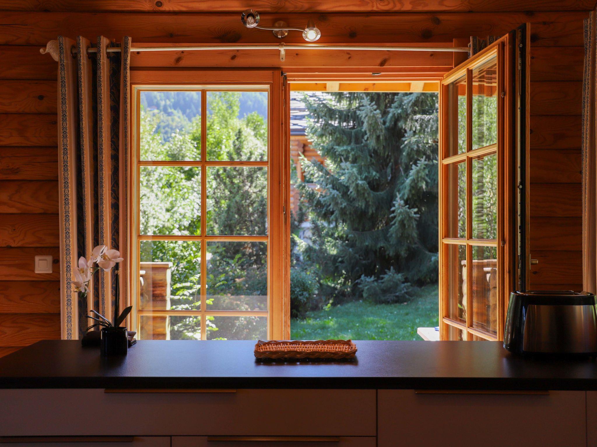 "Edelweiss", 7-room chalet 180 m2 on 3 levels, south-east facing position. Spacious, wooden furniture furnishings: entrance hall. Large living/dining room with Scandinavian wood stove and cable TV. Exit to the balcony. Open kitchen (oven, dishwasher, 4 ceramic glass hob hotplates, toaster, kettle, electric coffee machine, Capsules for coffee machine (Nespresso) extra, raclette grill, fondue Set (cheese)). Shower/WC. Electric heating. On the lower ground floor: 2 rooms, each room with 2 beds (90 cm, length 200 cm). 1 room with 1 french bed (160 cm, length 200 cm). Shower, sep. WC, Sauna. Top floor: 2 rooms, each room with 2 beds (90 cm, length 200 cm). Exit to the balcony and east facing position. 1 room with 1 french bed (160 cm, length 200 cm). Exit to the balcony. Bath/WC. 2 balconies, east facing position, terrace 30 m2, south facing position and, east facing position. Terrace furniture, barbecue, deck chairs (5). Beautiful panoramic view of the mountains. Facilities: children's high chair, baby cot. Internet (WiFi, free). Parking (2 cars), garage, height 200 cm, width 220 cm. Please note: non-smoking house.